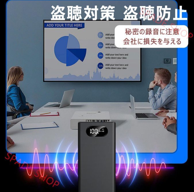 | 【録音防止シールド】本製品は最先端の電磁シールド技術を採用しており、ボイスレコーダー、スマートフォン、無線盗聴装置などの録音機能を簡単に無効化し、会議室での機密性の高い議論や機密の議論を不正な録音から守ります。 【300°カバレッジ】このシステムは包括的な保護を目的に設計されており、大規模な会議室の録音防止カバレッジを確保します。テーブルの上から部屋の隅、さらには天井の下まで、録音機器に対して侵入不可能なバリアを作り出します。 【インテリジェントな適応最適化】デバイスは、リアルタイムの使用シナリオに応じて干渉の強度と範囲を動的に調整し、予期せぬ電磁干渉を最小限に抑え、室内でのシームレスな通信プロセスを維持しながら、最高の録画防止パフォーマンスを保証します。 【ジャマー&パワーバンク】当社の録画防止ソリューションは多機能になるように設計されており、8000mAh容量のポータブルパワーバンクとしても機能し、主なセキュリティ機能に加えて利便性も提供します。 【豊富な適用シナリオ】機密会議室、公安苦情センター、検察庁、受付エリア、法廷、交渉室、行政事務所、その他プライベートな議論が必要な場所など、プライバシーと機密性が必要なさまざまな環境に最適です。安全に保たれます。 製品名:録音傍受妨害器 バッテリー容量: 8000mAh/3.7V 充電電圧: 5V/1000mA 出力電圧: 5V/1000mA スタンバイ電流: 14mA アンチレコーディング音圧: 120db/30cm (最大) シャットダウン電流: 60uA シールド角度: 300° (最大) 製品サイズ: 152*69*28mm リモコン方法: ワイヤレスリモコン距離 1-20 メートル 包装内容明細書 1 * 録音インターセプター妨害器 |