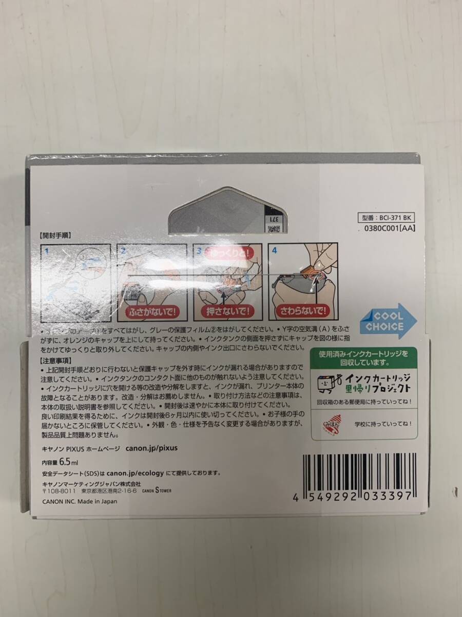 | 【商品名】 | canon PIXUS BCI-371 BK インクカートリッジ キャノン 純正品 インクタンク 標準容量 ブラック 2個セット |