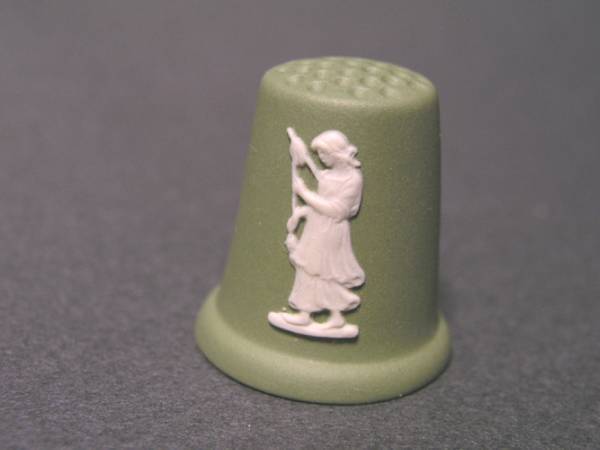 ◎ウェッジウッド グリーンジャスパー 綺麗な指貫 シンブル「少女a」◎