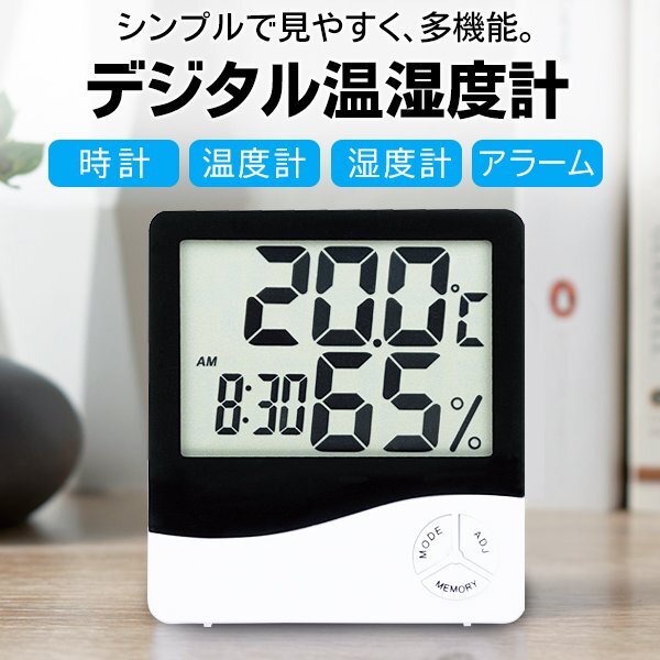 温湿度計 デジタル 温度計 湿度計 時計 アラーム 小型 スタンド 壁掛け 置き コンパクト 測定器 シンプル 送料無料 5M◇温湿度計U