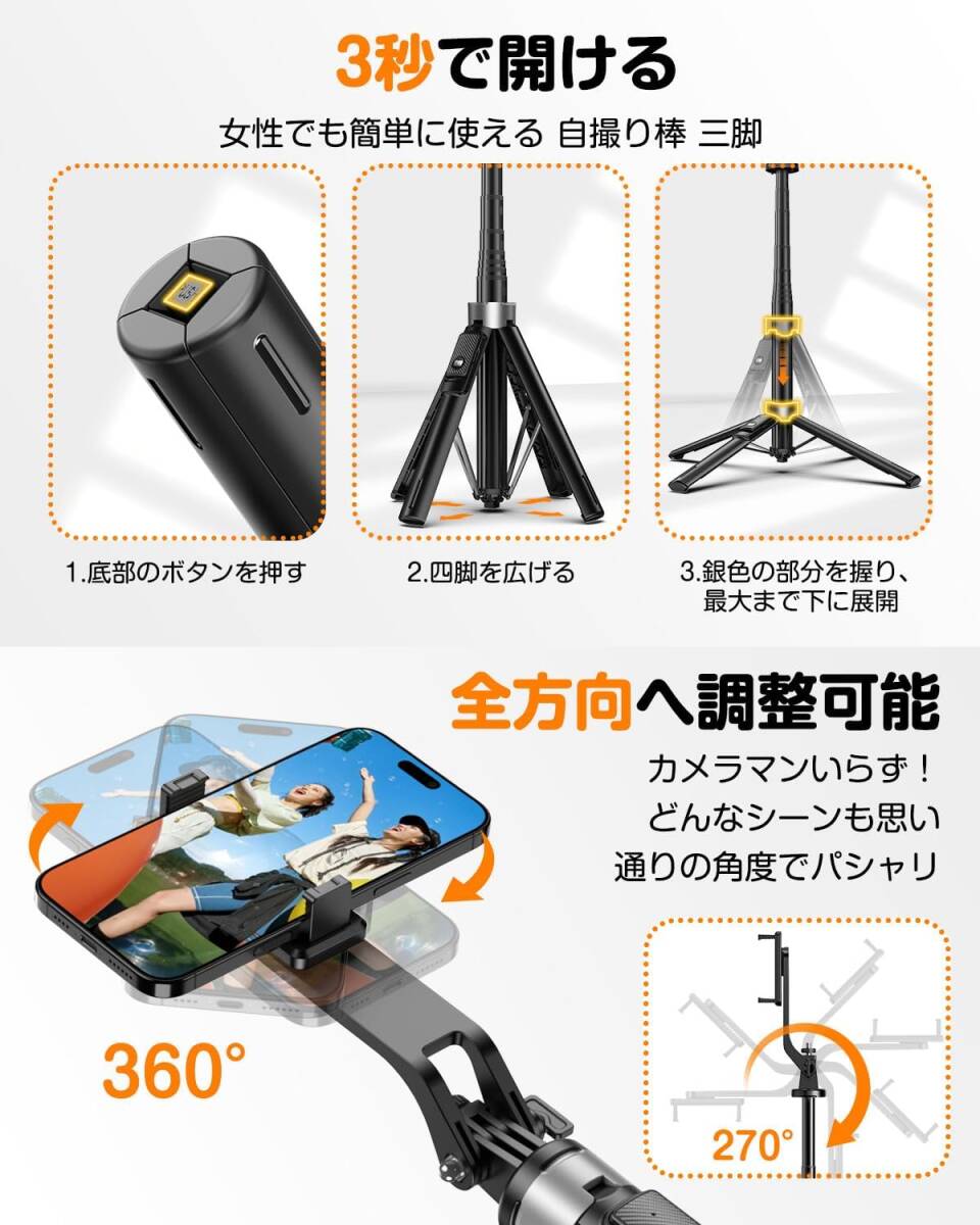 • 【 安定感抜群の二重スロット設計 プロフェッショナルな撮影体験】 各関節部分に固定ロックが施されており、セルカ棒が意図せず回転することを防ぎます。これにより、よりスムーズに角度を調整でき、美しい構図を簡単に実現できます。9段階の伸縮が可能で、最大135cm(付属品含む)の長さまで拡張可能。家族写真から広大な景色まで、幅広いシーンに対応します。