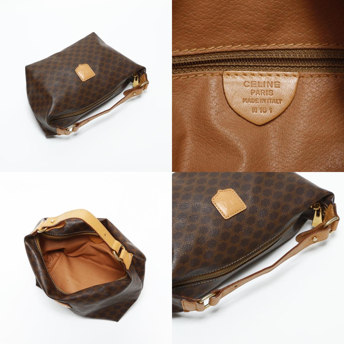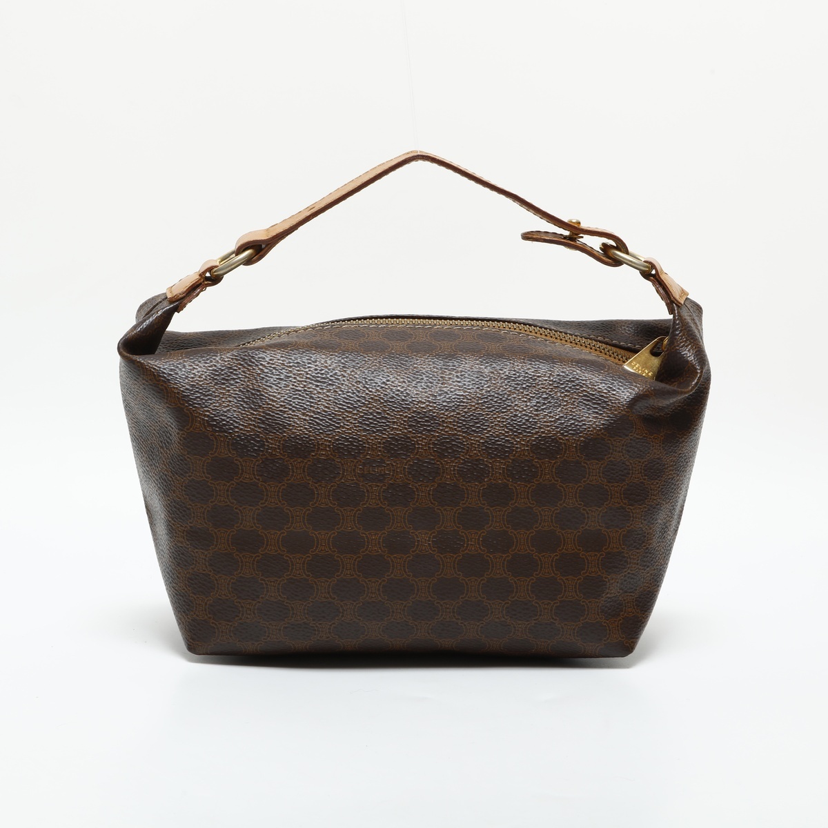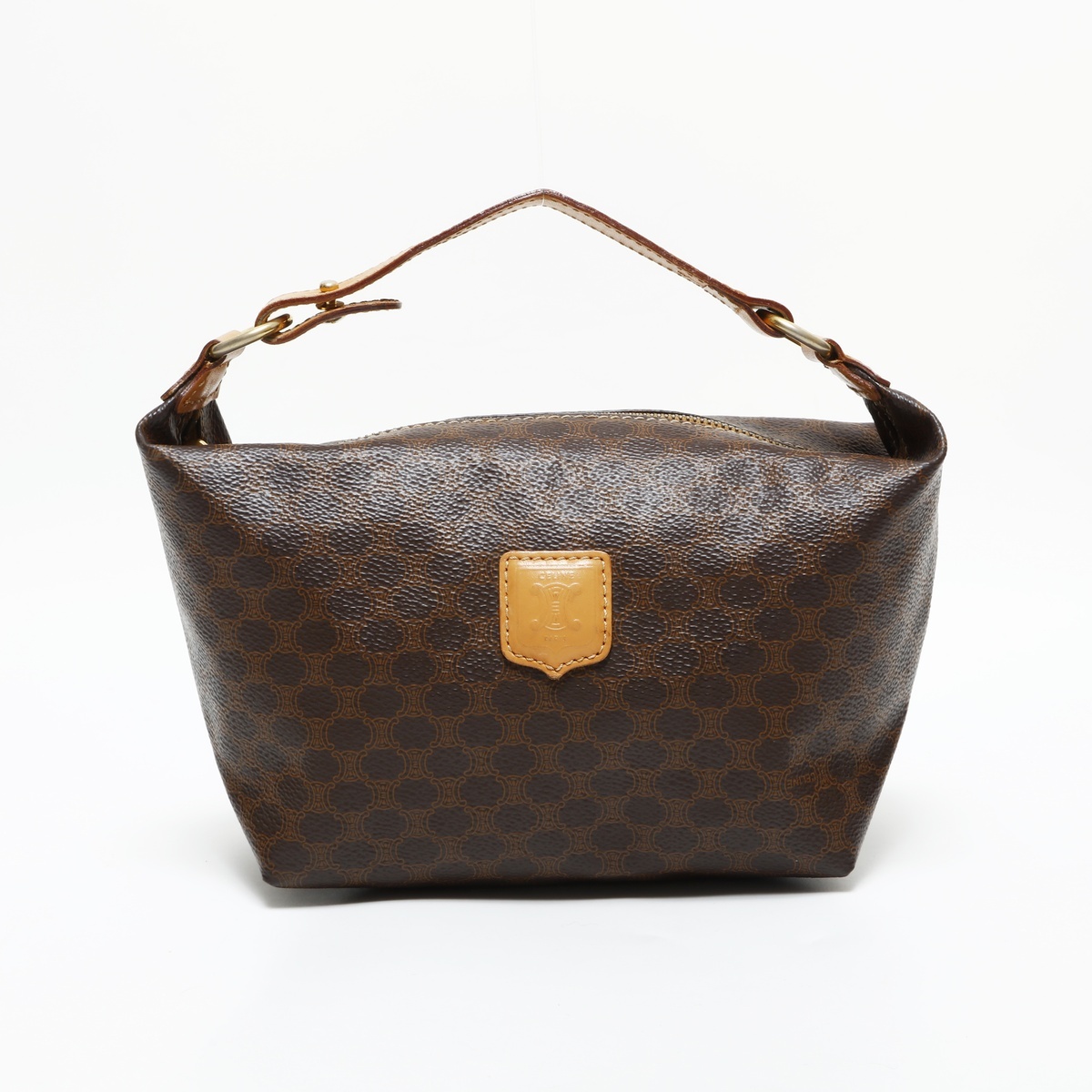 極美品 CELINE マカダム PVC ポーチ ハンドバッグ ブラウン
