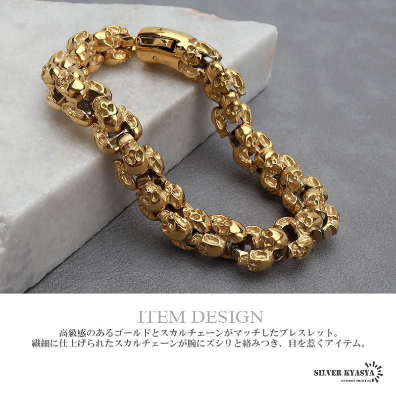 サージカルステンレス316L スカルチェーンブレスレット ゴールド 18KGP チェーンブレスレット 金属アレルギー対応