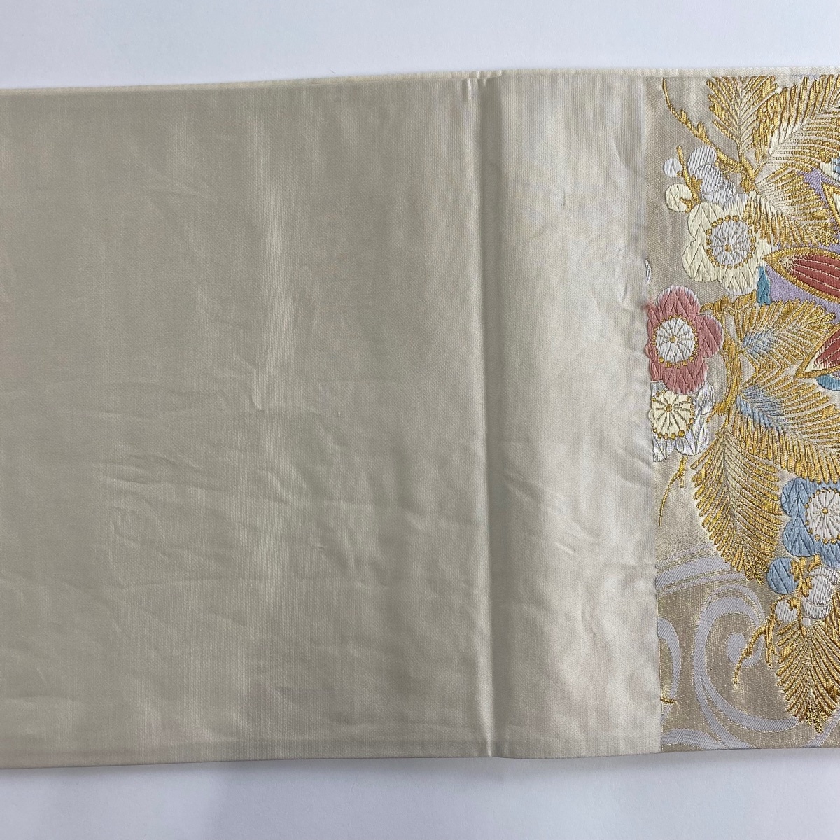 | 袋帯 秀品 証紙 流水雪輪松映文 流水雪輪松映文 松竹梅 刺繍 金銀糸 クリーム 六通 正絹 【中古】 |