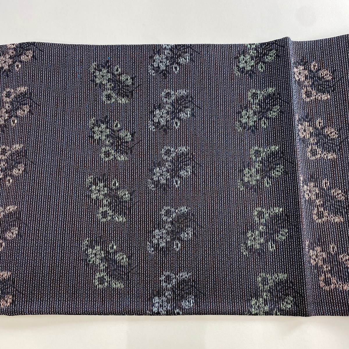| 袋帯 美品 名品 草花 銀糸 青黒 六通 正絹 【中古】 |