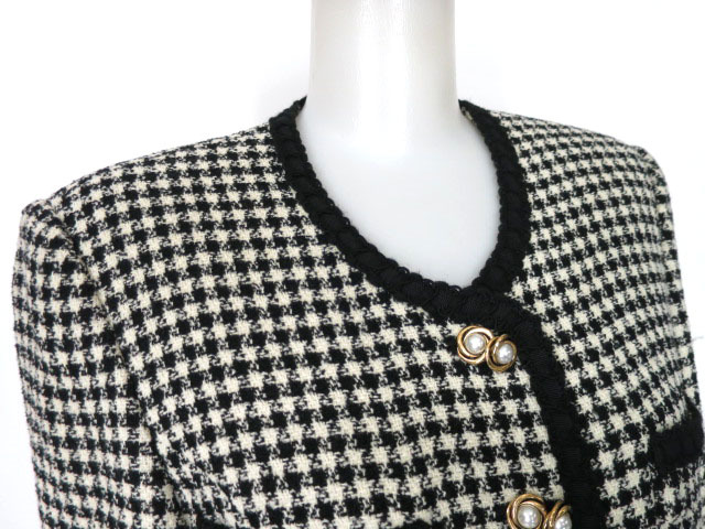 商品説明 INGEBORG 千鳥格子柄ジャケット パイピングが施された千鳥格子柄のノーカラージャケットです。 (株)ピンクハウス時代のお品です P027XFJ13 B 型番:P027XFJ13 B ●状態 やや使用感はありますが、目立ったダメージや汚れが無く、比較的状態の良好なお品です。(中古品となりますので気にならない程度の細かな傷汚れ等が見られる場合がございます) ●サイズ 実寸:肩幅42 身幅47.5 着丈55.5 袖丈60(cm) ※多少の誤差はご了承ください。 素材: (株)ピンクハウス 日本製 表地毛72% ナイロン28% 裏地キュプラ100% 色:オフ白×黒 発送方法 ●ヤマト運輸 元払い全国一律600円 (沖縄は1600円になります。) ●同梱【まとめて取引】について 同梱ご希望の方は【取引をはじめる】の前に、必ず【まとめて取引をはじめる】ボタンを押して下さい。 【☆何点買っても600円☆】複数落札時の同梱も可能です。 * 最初の落札から72時間以内に落札した商品のみ【まとめて取引】がご利用できます。 * 評価6未満の方は【まとめて取引】機能が利用できませんので単品ごとのお取引になります。 ●土曜、日曜、祝日は業務をお休みさせていただきます。 (年末年始・GW・お盆などの大型連休期間もお休みとさせていただきます) お問合せのご返信や発送等は平日48時間以内にご対応させていただきます。 その他 ●付属品等につきましては画像に写っているものが全てとなります。 ●中古品に関しましては目立つダメージ・汚れのみの掲載になります。軽微な傷汚れ等の掲載漏れはご容赦ください。 ●値引きや早期終了の交渉はお受けいたしておりません。 ●落札者様都合による返品はお受けいたしかねます。(試着して似合わなかった、画像と実物でイメージが違った、色味が違うなど) ご不明な点などがございましたら質問欄よりお気軽にお問い合わせください。 |