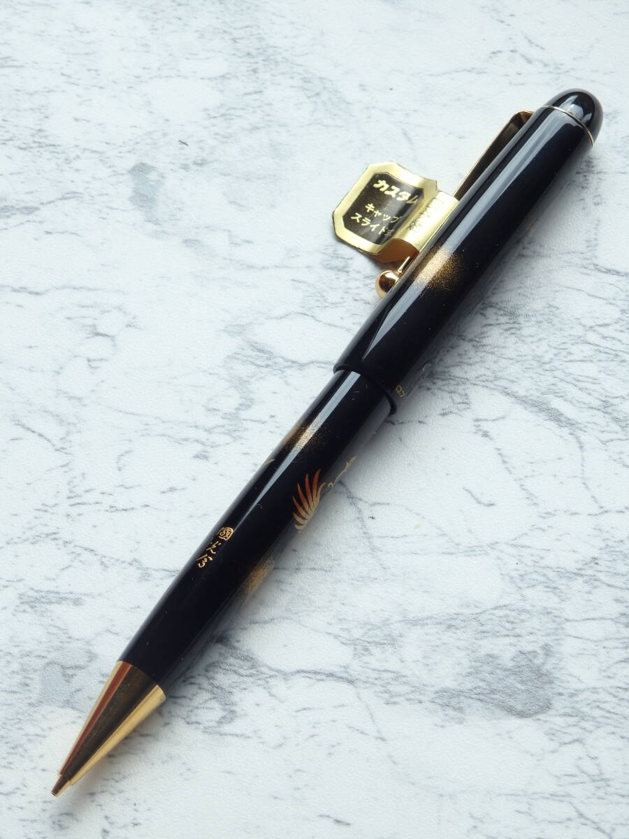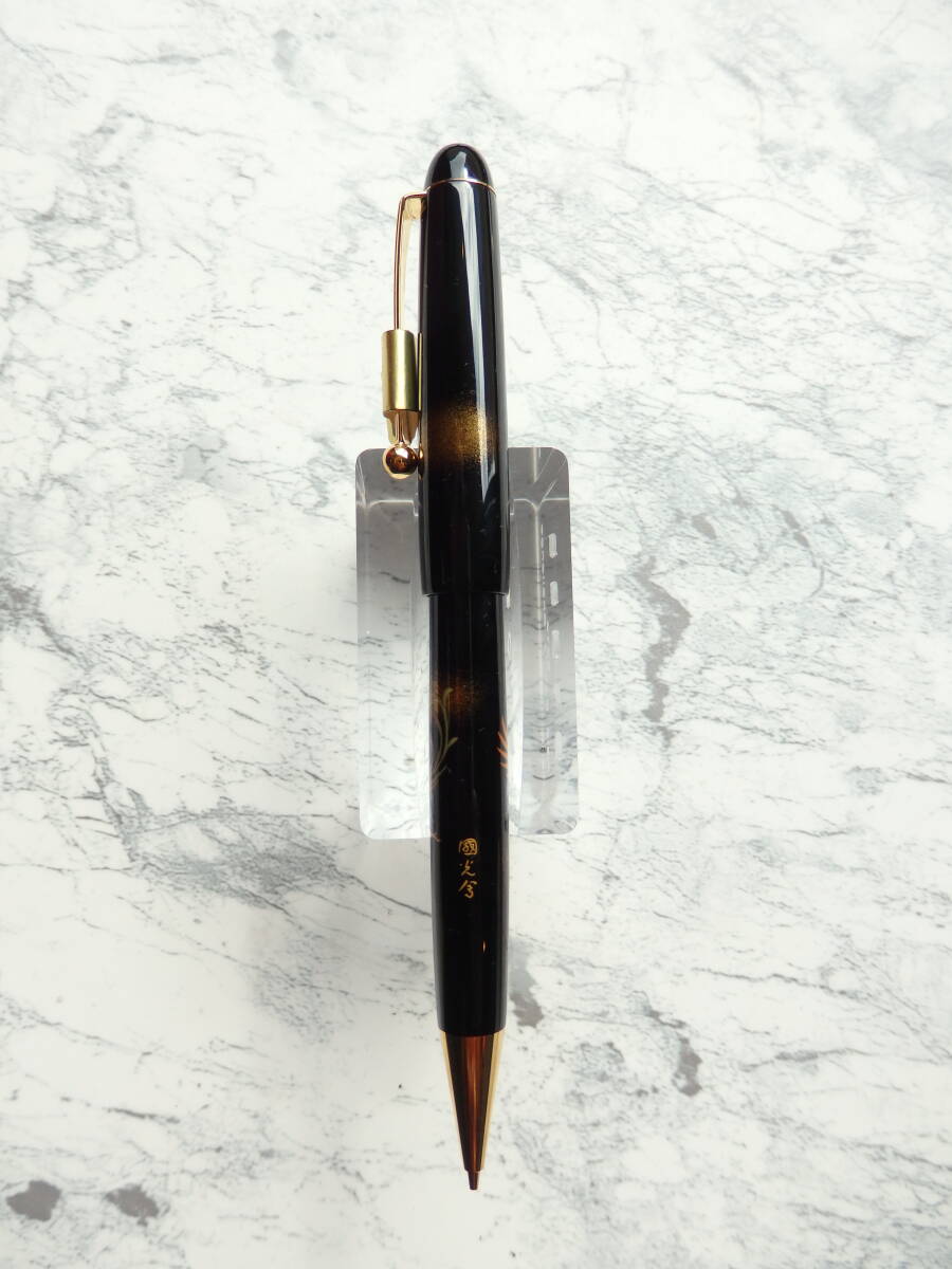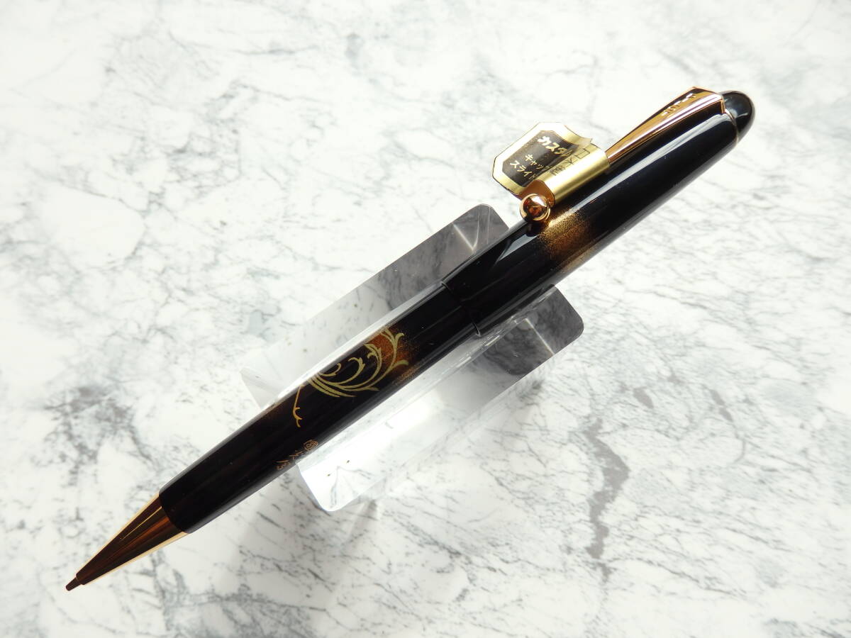 漆工芸技法のひとつ、平蒔絵を施したプッシュ式シャープペンシルです