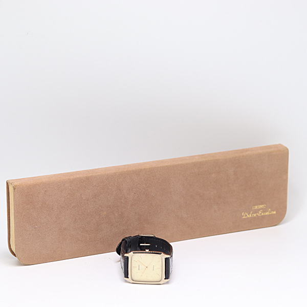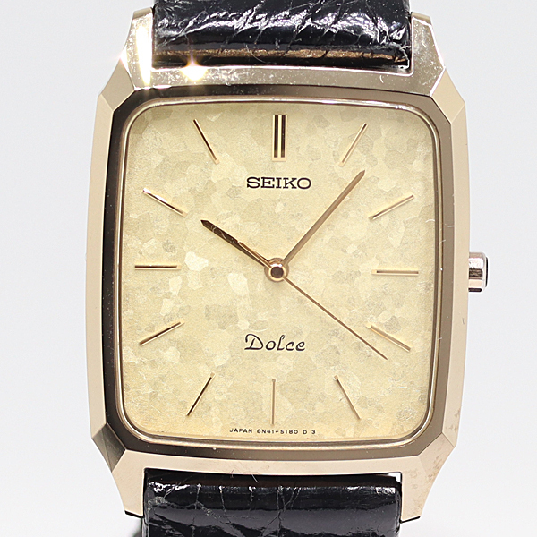 デッドストック級 箱付 稼働 セイコー ドルチェ 8N41-5130 QZ ゴールド文字盤 メンズ腕時計 2908000 10NBG ABC16889 SMZ