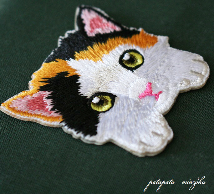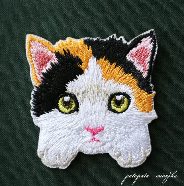 可愛らしい三毛猫 の刺繍 ワッペンです。