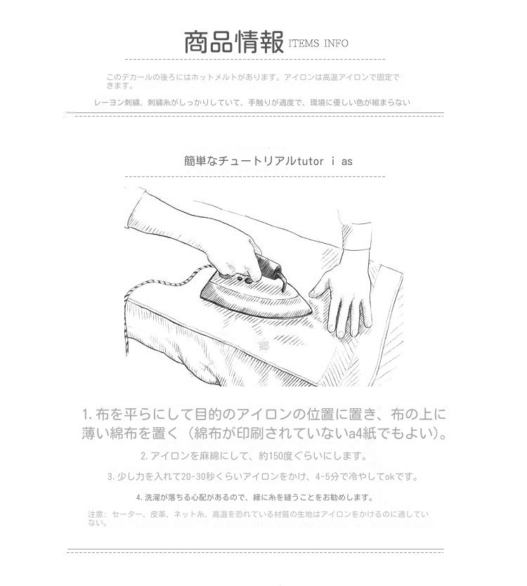 アイロン補強に加え、縫い付けでの固定をおすすめします。