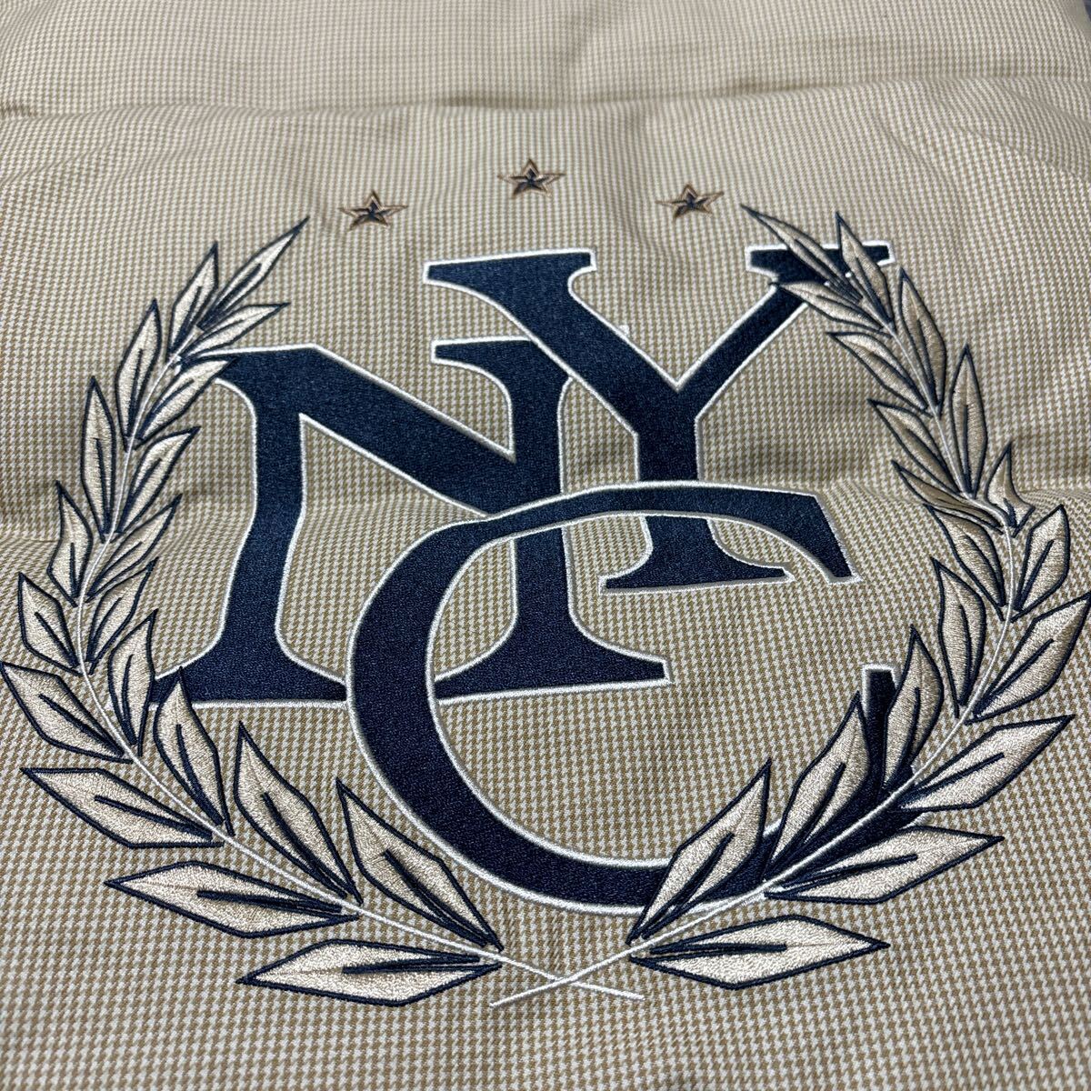 胸元の刺繍と背中のグラフィックデザインが特徴的なアイテムです。