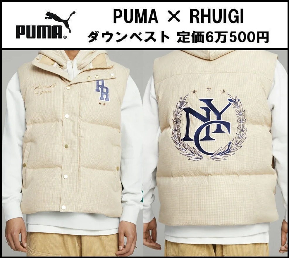 RHUIGIのブランドロゴ入りのウーブンラベルがついており、コラボレーションならではの特別感のあるデザインです。