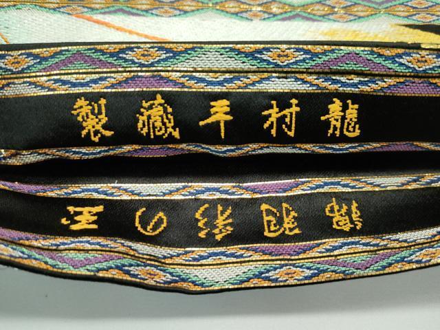 | 【正絹】 状態は締めてはおりますが 特に目立ったシミ汚れなどもなく大変良い状態です。 近代染織界において大きな業績を残した、初代龍村平藏。 織物の世界に「美」の要素を持ち込んだ第一人者、 初代龍村平藏は法隆寺、正倉院などに伝わる 古代裂など伝統的な織物の研究に尽力し、 復元の第一人者として織物の地位を「芸術の域」にまで高めました。 幼時から茶道、華道、謡、仕舞、俳諧と 文芸美術の豊かな環境の中で育った彼は、 「従来にない独創的な織物を作りたい。」 そんな想いを胸に来る日も来る日も新技術の開発に打ち込んだ結果、 その努力が見事実を結び、平蔵は30代という若さにもかかわらず数々の特許を取得、 周囲の人々に衝撃を与えたのです。 伝統的な西陣にあって、 常に斬新な発想と革新的な技法の習得により新境地を切り開いてきた龍村平蔵。 彼が残した「温故知新を織る」という言葉からは、 彼が生涯をかけて取り組んだ「織の美」にかける 純粋なまでの熱き想いを感じ取ることができます。 龍村平蔵の作品は時空を超えて、今も私達の目の前で燦然と輝き、 “織”の世界の奥深さをじっくりと堪能できる、 貴重な財産といえましょう。 大変上質な最高級品になります。 お安く出品致しますので、是非この機会にいかがでしょうか?