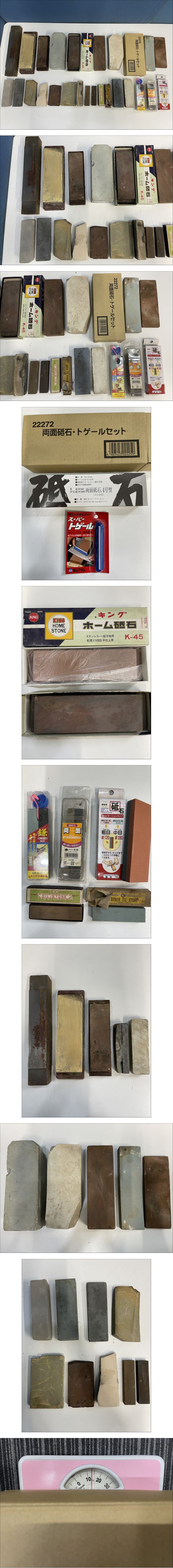 | 数ある中よりご覧頂きありがとうございます。 ◆譲り受けましたお品を現状引き渡しにて出品いたします。 ◆検品は十分に行っておりますが、稀に見落としがある場合がございます。出来る限りの記載はしておりますが、予めご了承くださいませ。 ◆可能な限り早めの発送を心がけておりますが、出荷までに日数を要する場合がございます。お急ぎの方は入札をお控えください。 ※同梱ご希望の際は必ず【まとめて取引】にてお手続きくださいませ※ こちら画像の砥石まとめ売りになります。 未使用品、箱付きのものも含まれますが、全て長期自宅保管品になります。 専門知識が無い為、詳細は分かりかねます。画像でのご判断よろしくお願い致します。 経年劣化による、欠け、汚れ、傷等ございます。 細かい検品は行っておりませんのでご了承ください。 専門的なご質問にはお答え致しかねますので、予めご了承ください。 現状のままお渡しさせて頂きます。 中古品ですので使用感等ございます。 状態等は画像をご覧になられましてご判断ください。 上記の事をご了承の上でのご入札をお願いいたします。 ・中古品だとご理解の上、ご入札をお願い致します。 ・細かい方や神経質な方は入札をご遠慮下さいませ。 ・ノークレーム、ノーリターンですよろしくお願い致します。 ・画像のものが全てです。 | |||