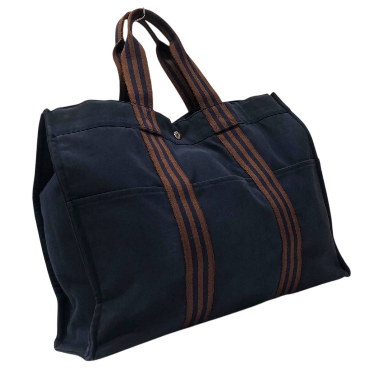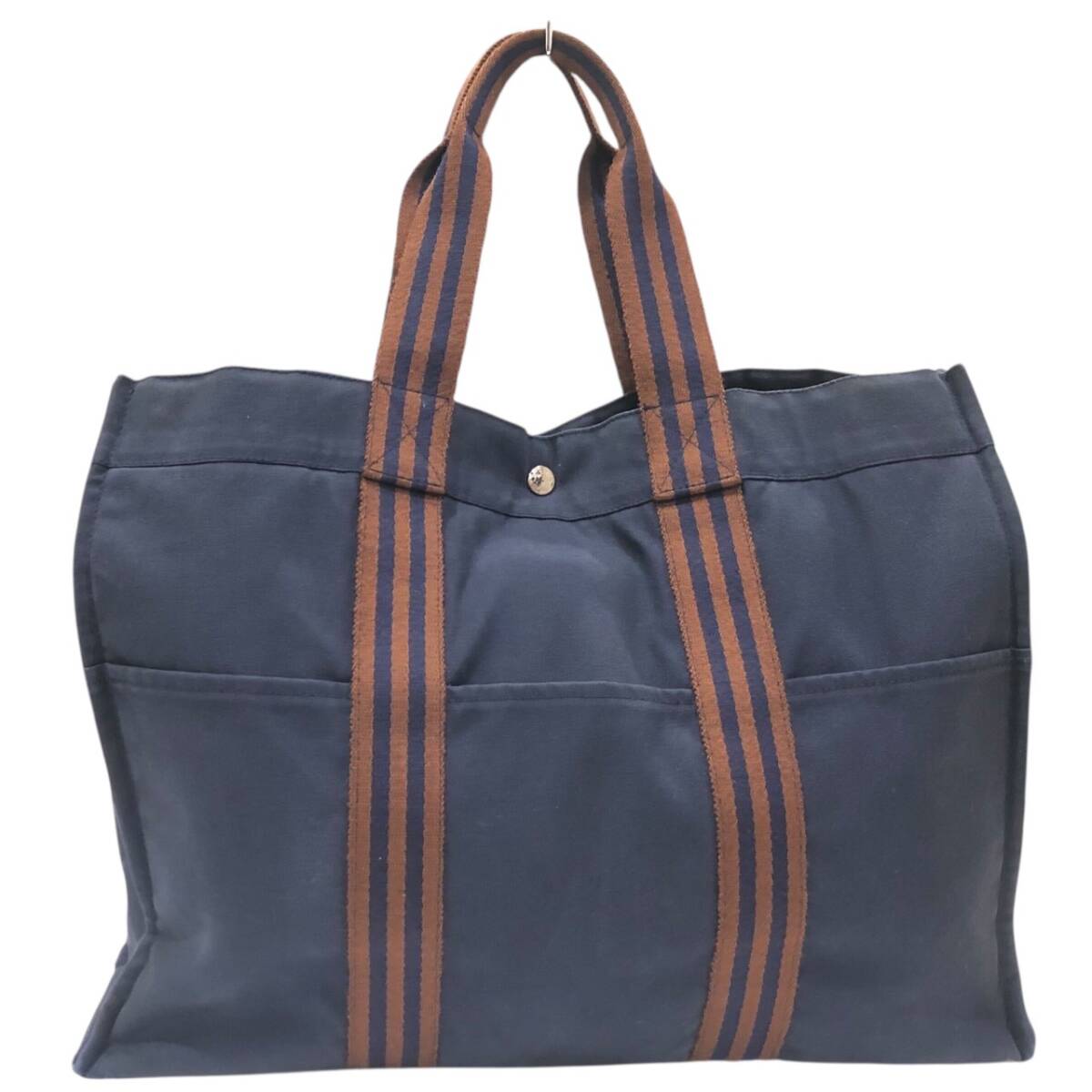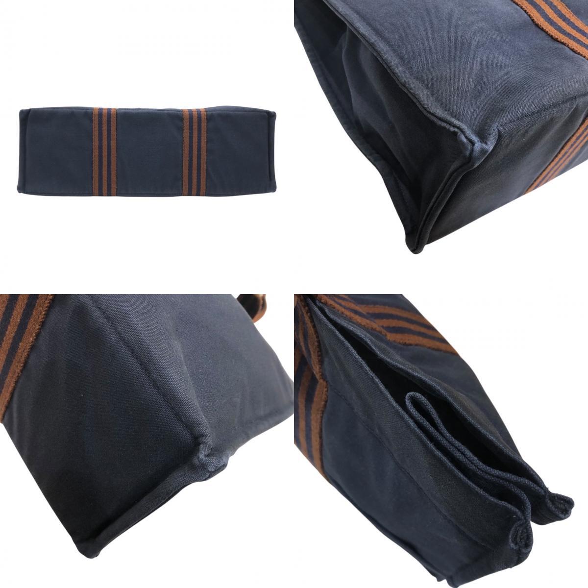 | HERMES フールトゥ トートGM トートバッグ ネイビー×ブラウン キャンバス シルバー金具 |