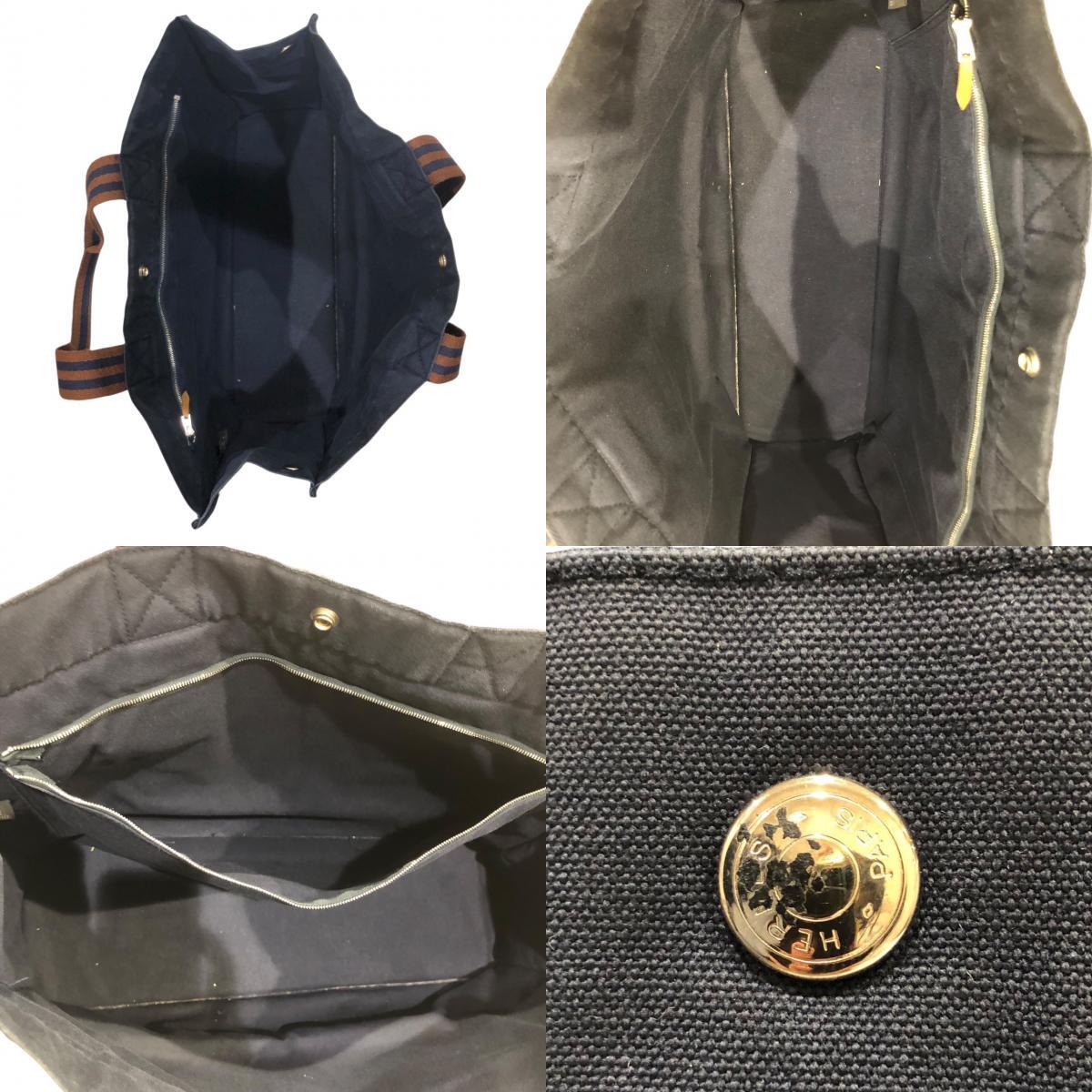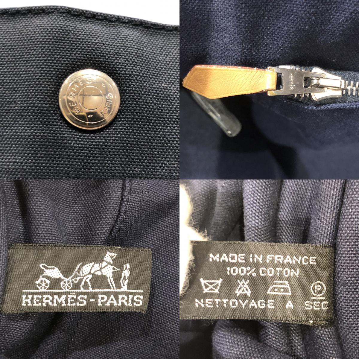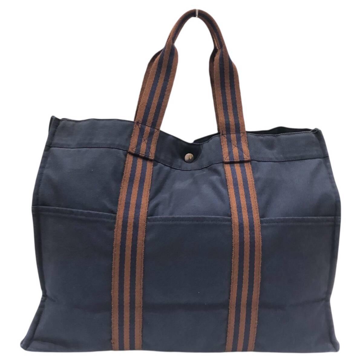 | HERMES フールトゥ トートGM トートバッグ ネイビー×ブラウン キャンバス シルバー金具 |