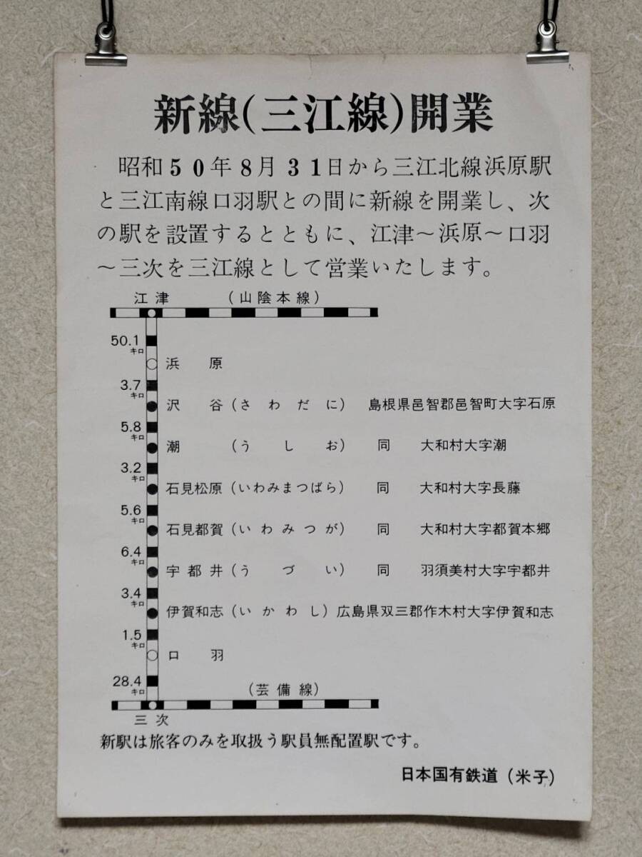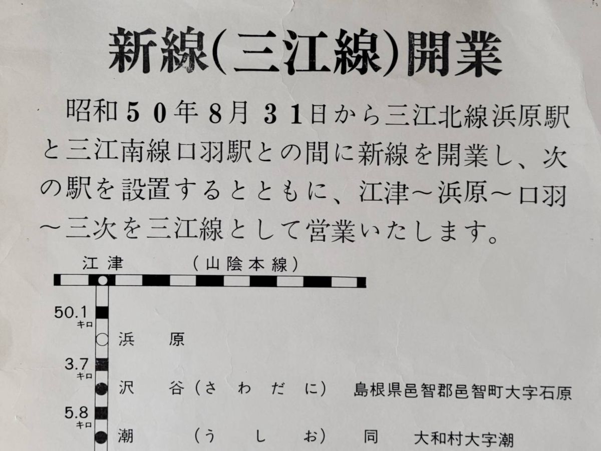 ★三江線は、昭和50年(1975年)8月31日に三江北線(浜原駅)と三江南線(口羽駅)の間が開業し、江津~浜原~口羽~三次が一本の三江線として営業を開始しました。