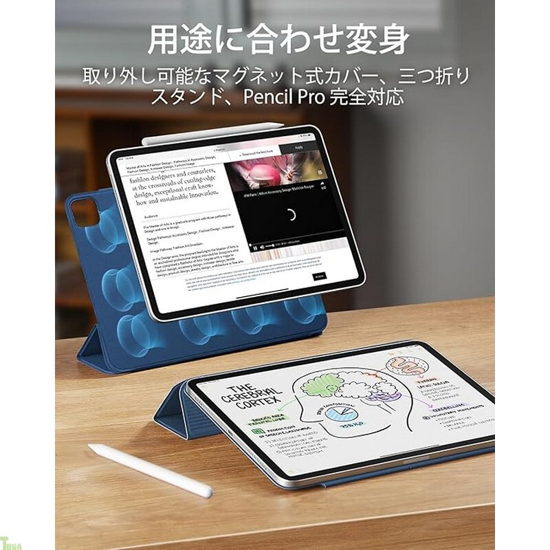 ブルー 三つ折り 強力マグネット吸着式 Pencil Pro / USB-C 対応 アイパッド プロ iPad Pro 13 インチ M5 2025 / M4 2024 ケース カバー