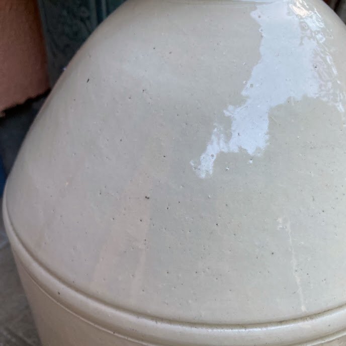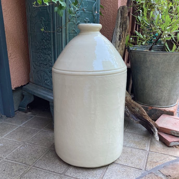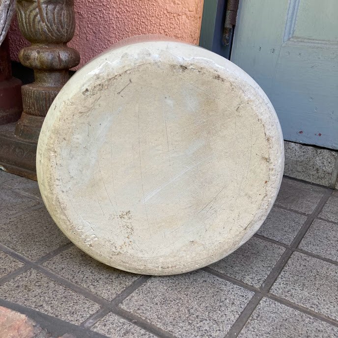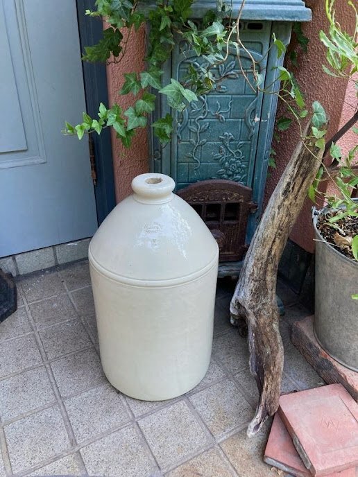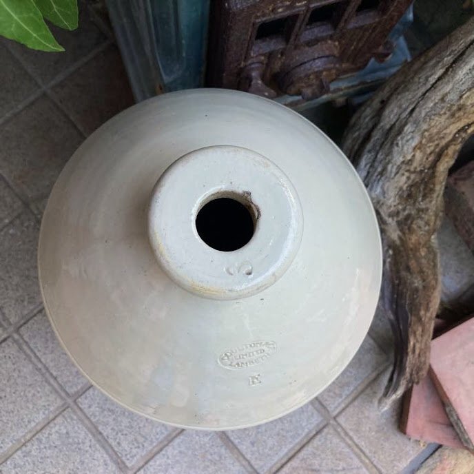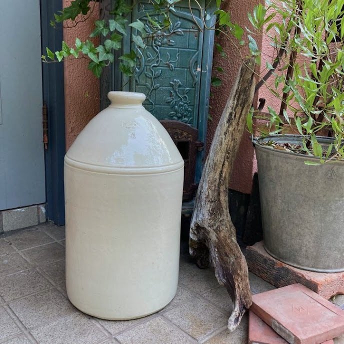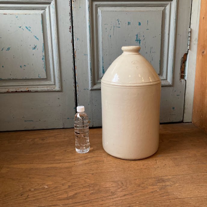 エドワード7世によりロイヤルの称号をもらったロイヤルドルトン、そのロイヤルドルトンのとても大きなボトルが入荷しました。500mlのペットボトルと比較しておりますので、サイズ感をご確認ください。このマークは1899年から使用されていたもののようです。香りの感じ方に個人差がありますが、ビンの入り口に鼻を近づけると、外国特有の香料のような甘い香りを感じます。側面には製造時にできた独特の凹凸が見られます。うっすらとヒビのように見えるスジが見えるため、30分程度水をいれてみましたが水漏れはありませんでした。高さ45㎝ほどの大きさは、非常にインパクトがあり、存在感のあるお品をお探しの方におすすめです。福岡市南区の店舗にてお渡しもできますのでお気軽にどうぞ!