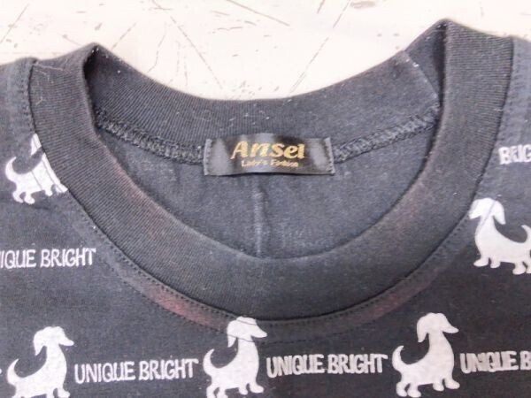 Ansel オールド レトロ 古着 犬 ワンちゃん シルエット総柄 トップス 半袖Tシャツ カットソー レディース 韓国製 黒