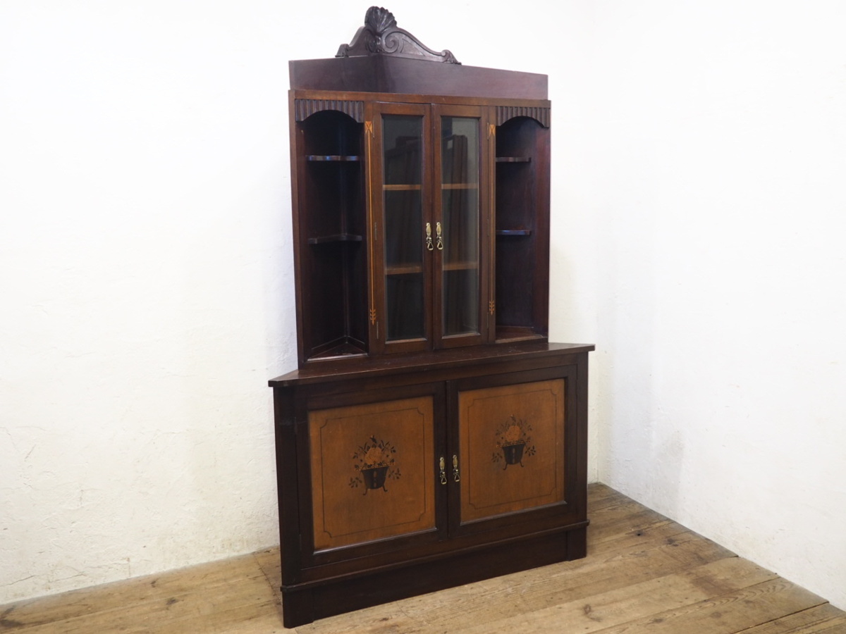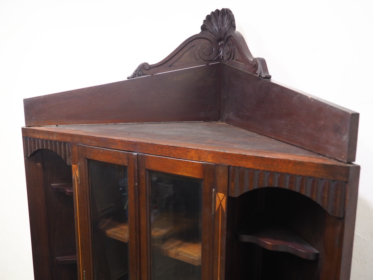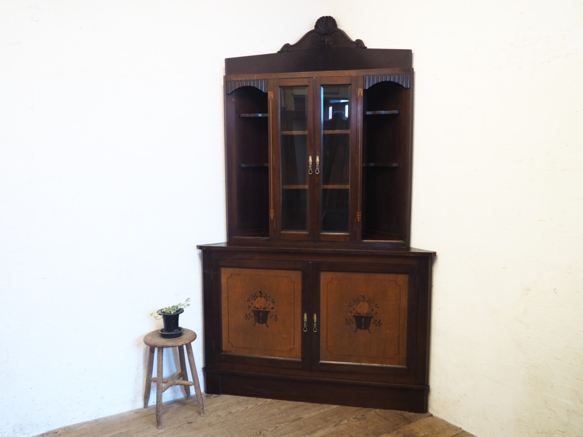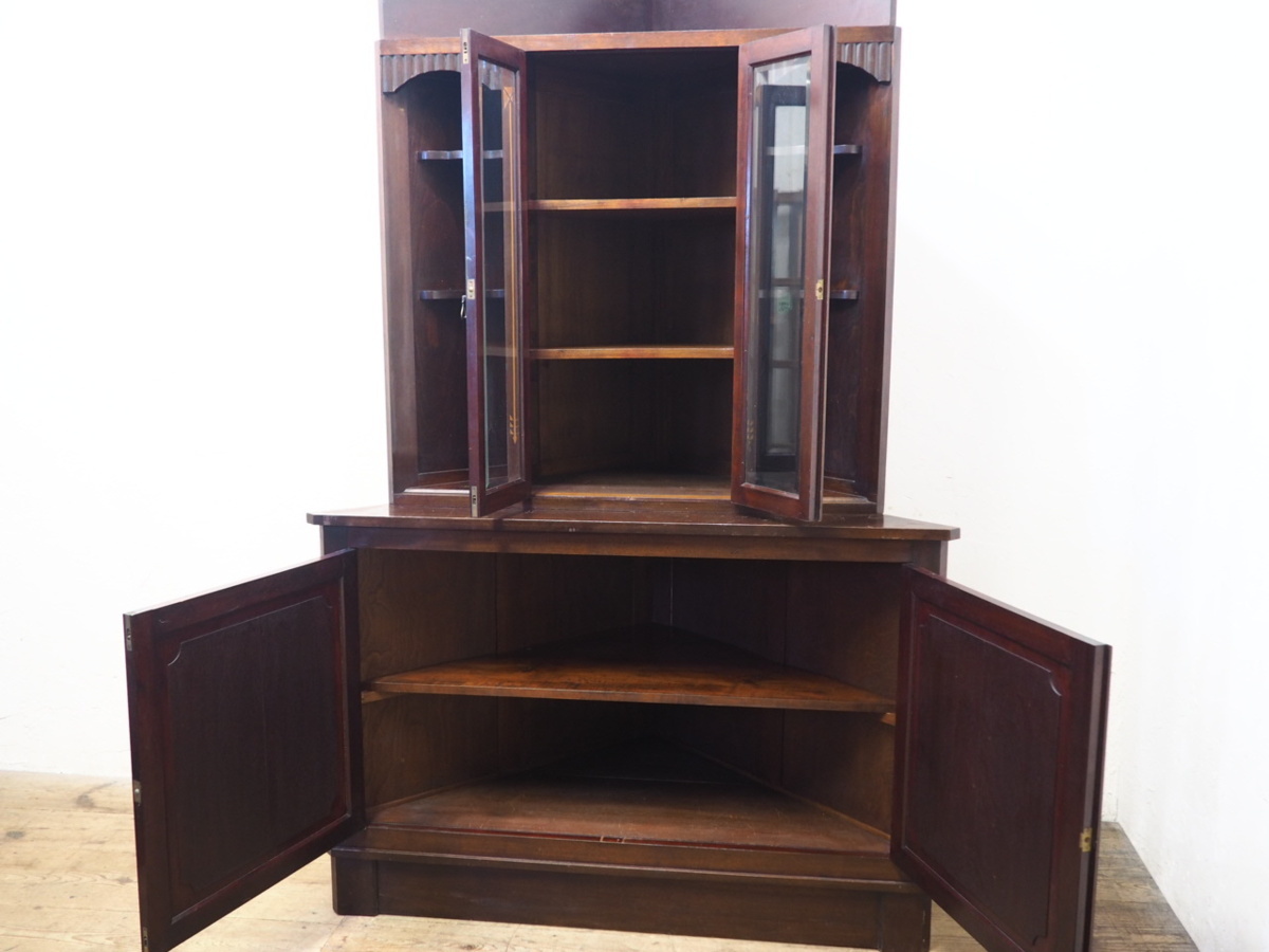 アンティークの重厚な古い木製コーナーキャビネットです。