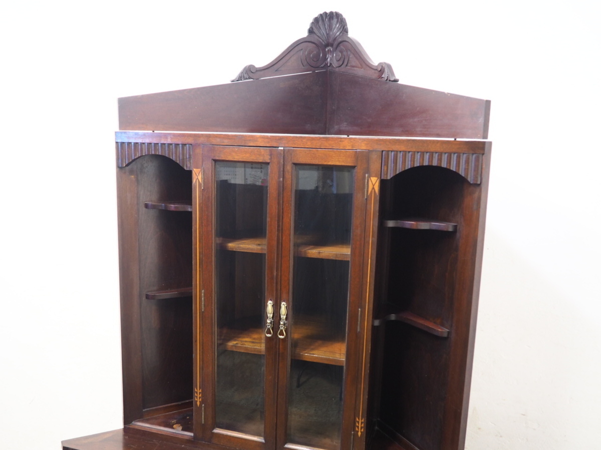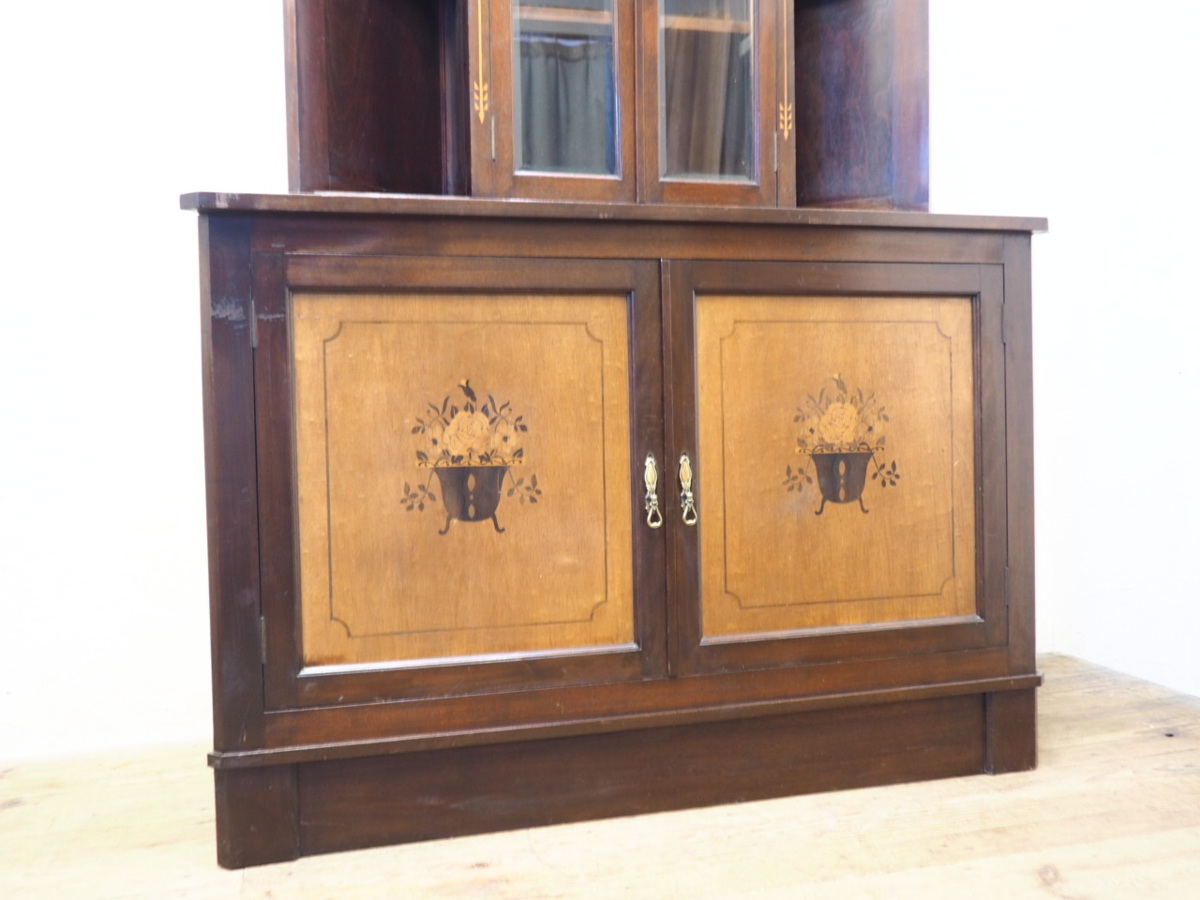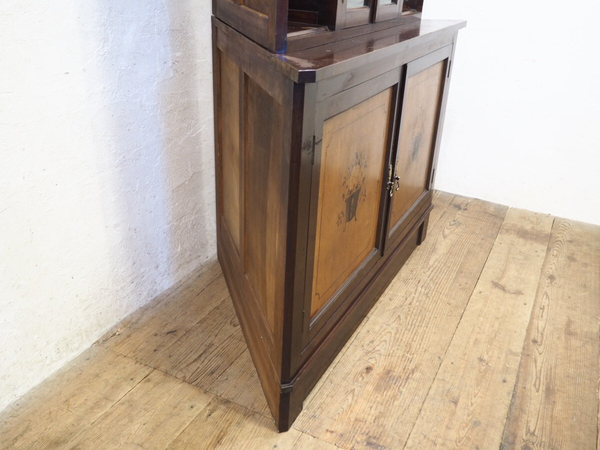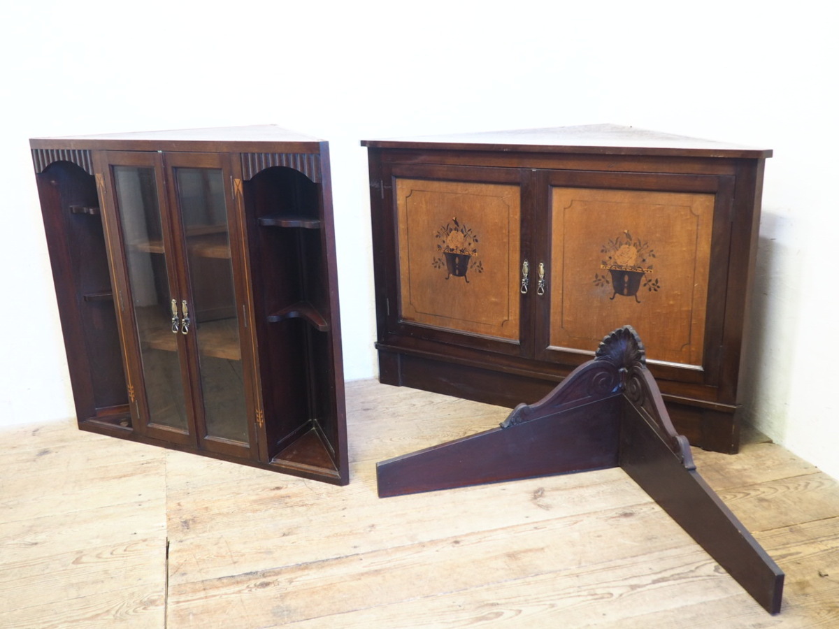 アンティークの重厚な古い木製コーナーキャビネットです。