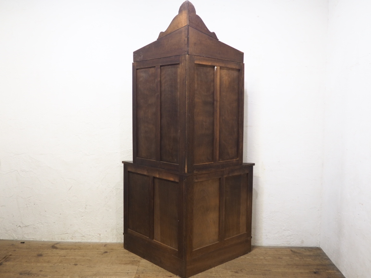 タ荷W0455◆H223cm◆アンティーク◆レトロな洋館の重厚な古い木製コーナーキャビネット◆飾り棚 陳列棚 コーナーラック 大正ロマンX(ヤG)卸