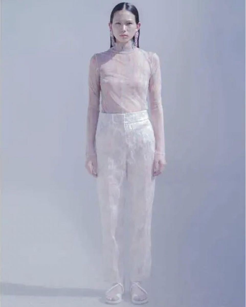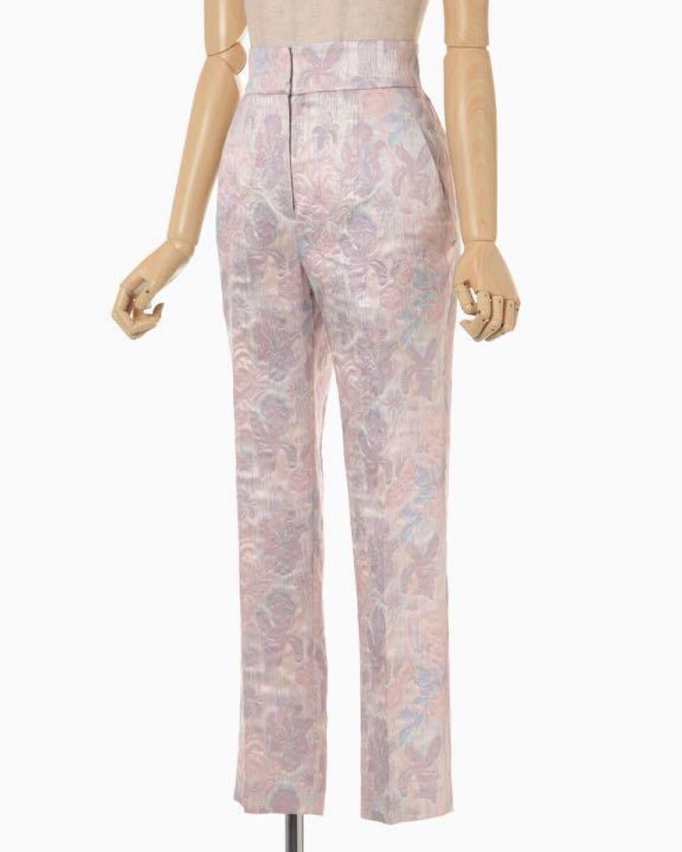 新品未使用タグ付きです。 苦労して手に入れたのですが、なかなか着用の機会なく、また物入りのため泣く泣くの出品です。 デザイナー自身の原風景となる記憶の中の春を表現したフローラルジャカードトラウザーズ。 冬から春へと季節が移ろいゆく、淡く見える様で見えないぼんやりと霞む霧の様なおぼろげな記憶は、幾重にも重なるレイヤーとなって表現され三重織ジャカードへと昇華した。ウエスト部分のダーツをそのままポケットのラインに繋げることで、美しいカーブや立体的なフォルムを獲得。マニッシュなシルエットながらも、繊細なディテールとの調和が美しいトラウザーズは、シンプルなトップスと合わせることで、コンセプチュアルなスタイルに。 付属のブランドロゴ入りガーメントケースに入れてお送りいたします。 サイズ2 脇丈94.3cm、股下丈69.0cm、ウエスト71.0cm、ヒップ97.0cm、裾37.6cm カラーピンク 季節感春、秋、冬 素材シルク シルエットテーパード 柄・デザイン花柄 股上レギュラー 丈クロップド