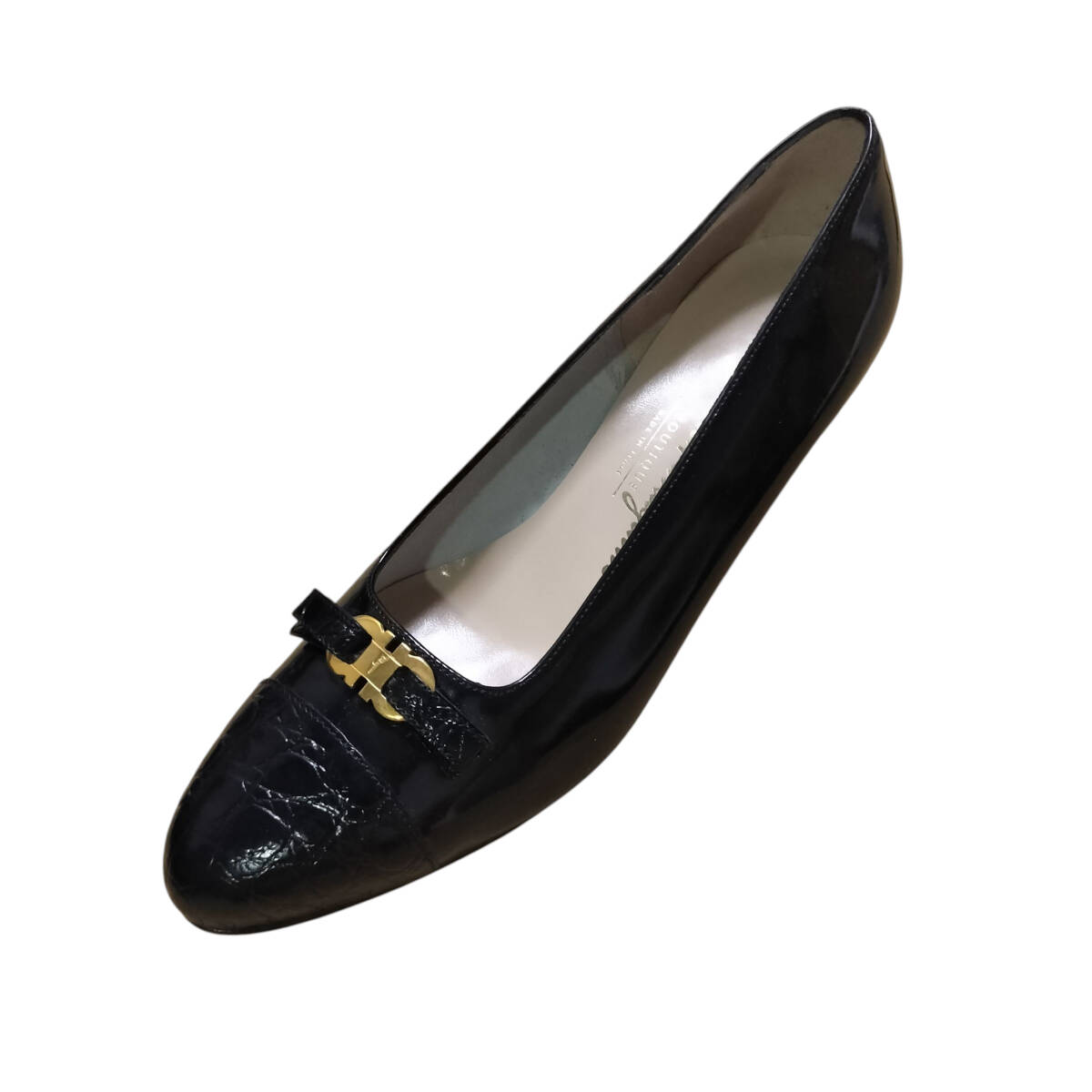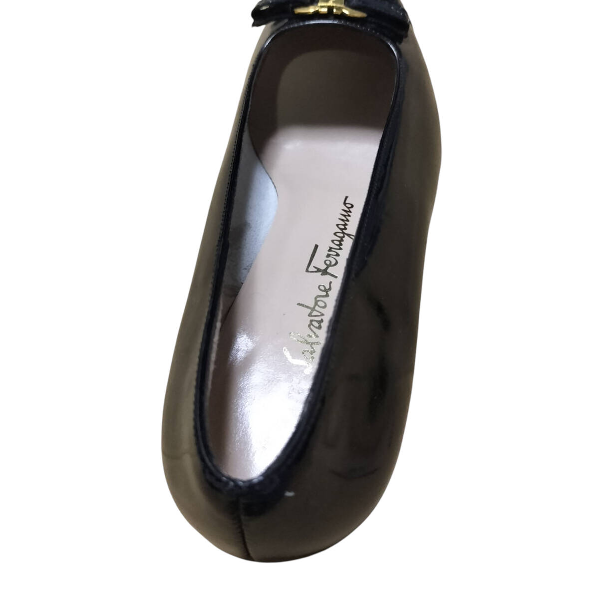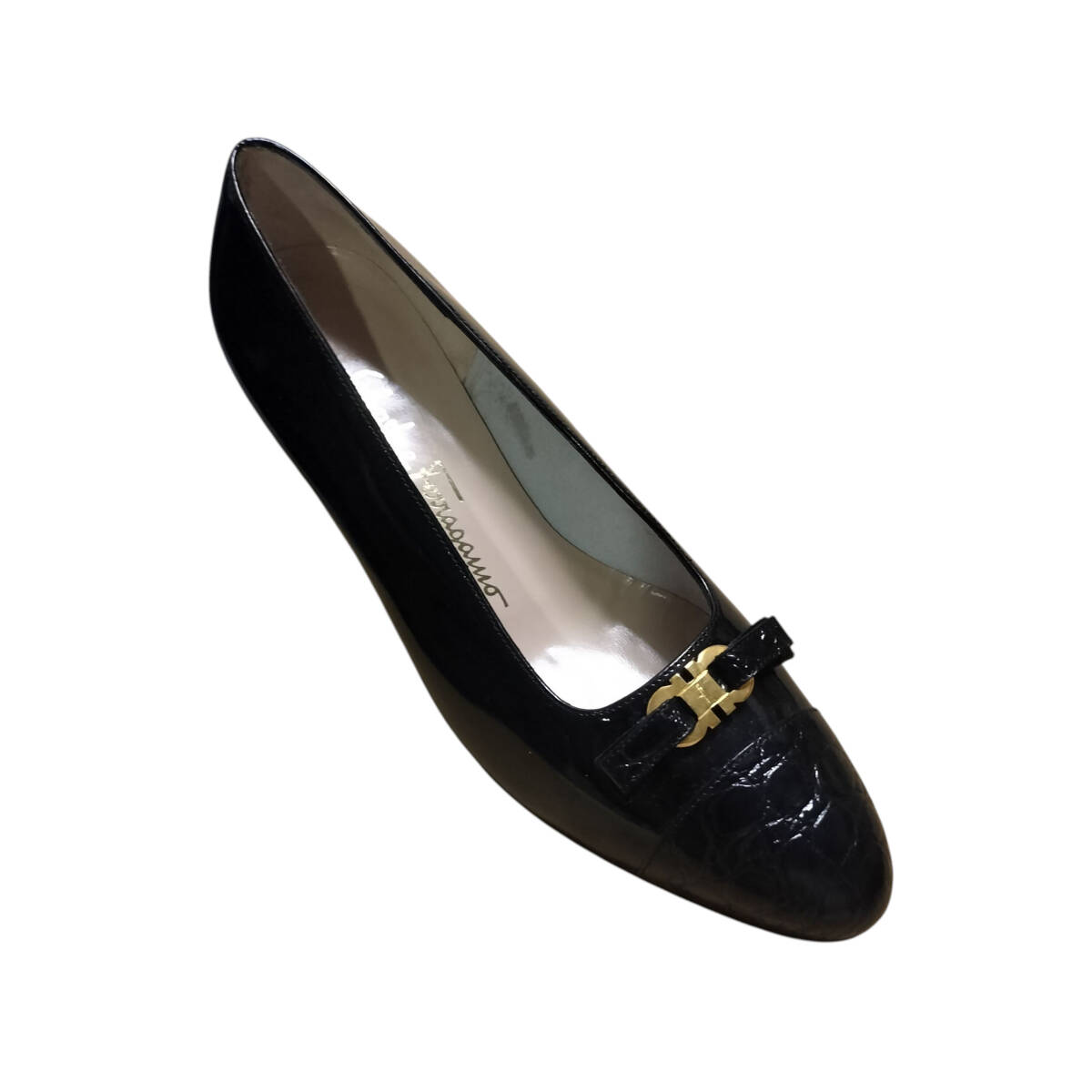 【美品】Salvatore Ferragamo サルヴァトーレフェラガモ フェラガモ パンプス ガンチーニ 7C 24cm相当 ブラック 黒 レザー ヒール