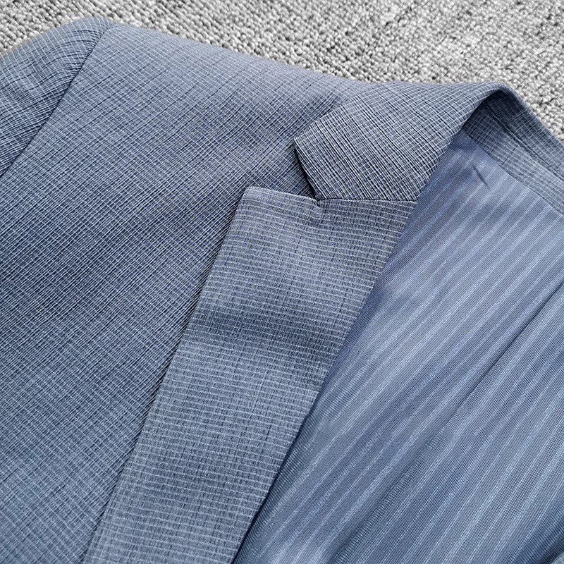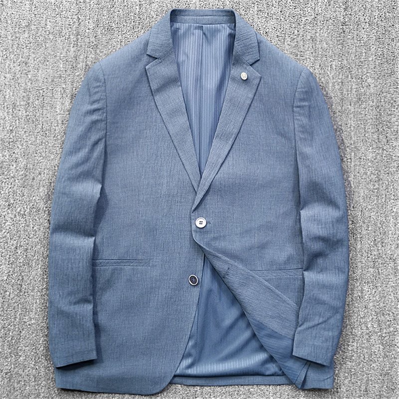 高級限定 新品 DCKMANY メンズ テーラードジャケット 春夏 カジュアル スーツ 軽量 通気性 スリムフィット ジャケット/青色T4065-XL