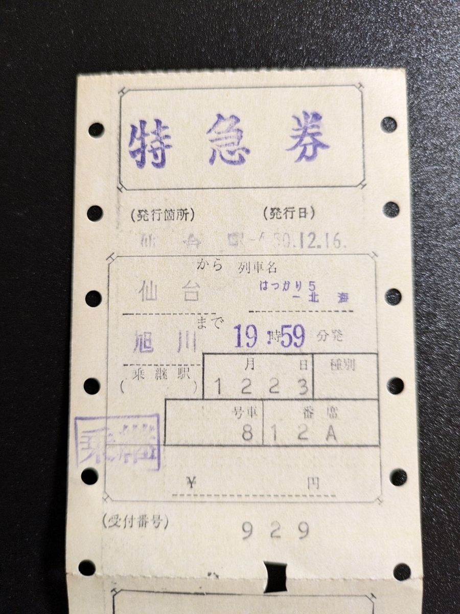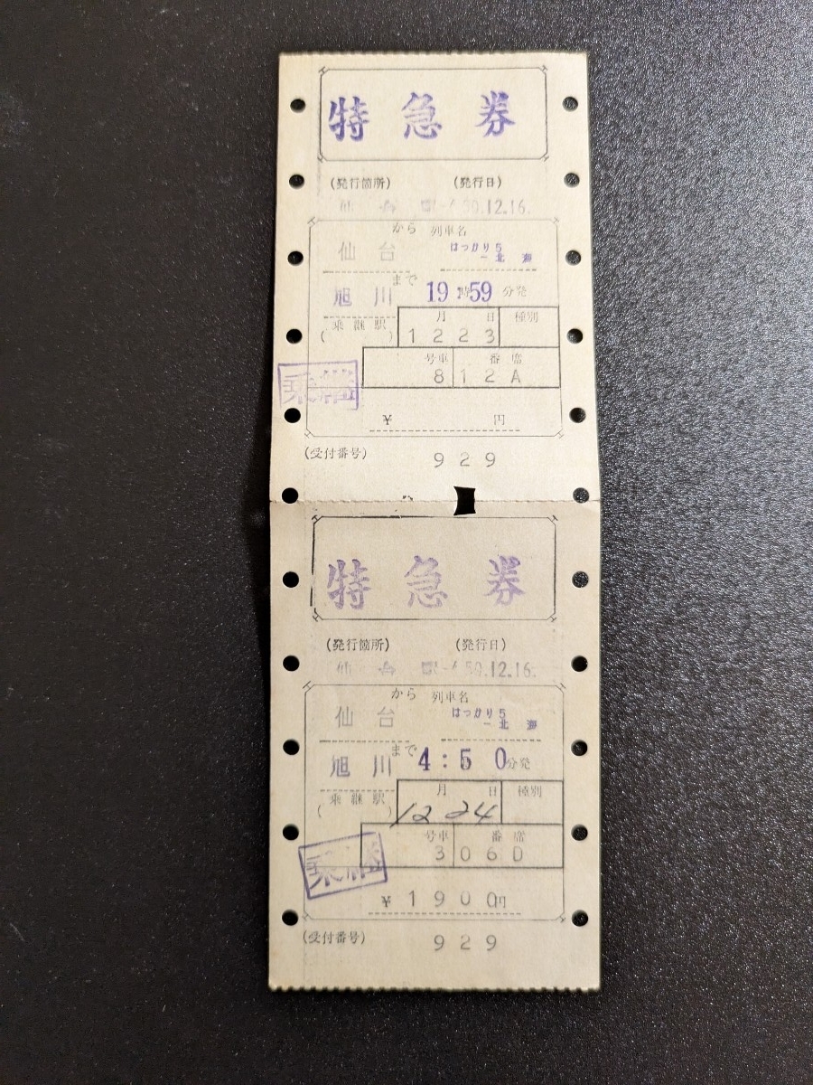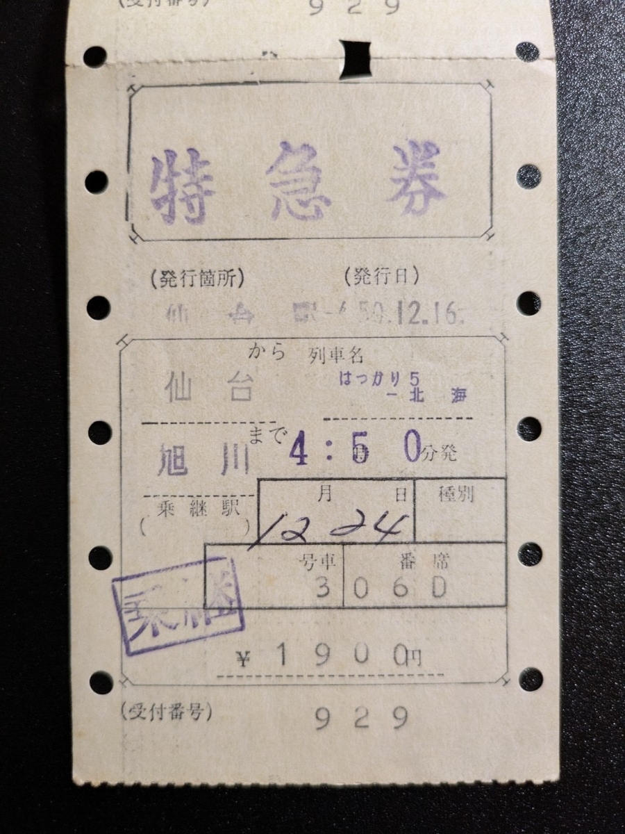 はつかり5号−北海 乗継特急券 仙台から旭川まで 希少切符