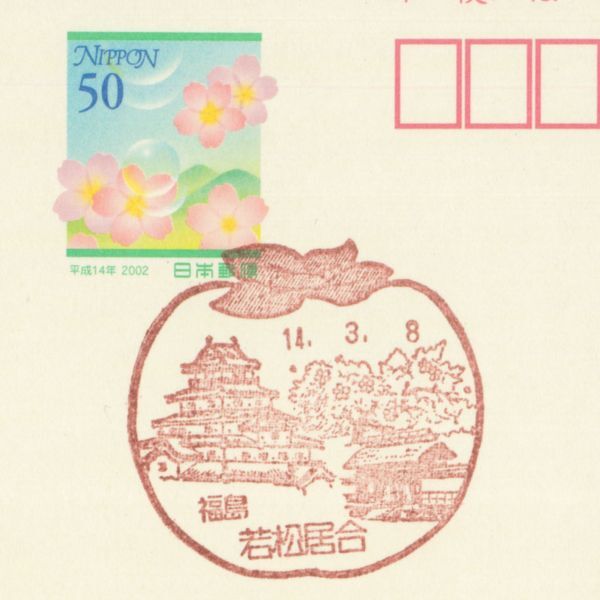 風景印☆初日☆福島・若松居合・H14.3.8・変形枠・さくらメール