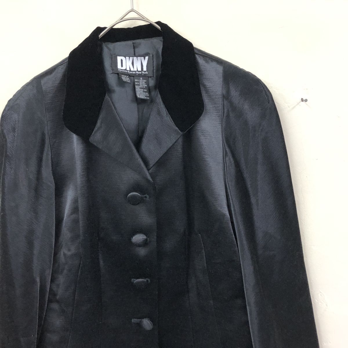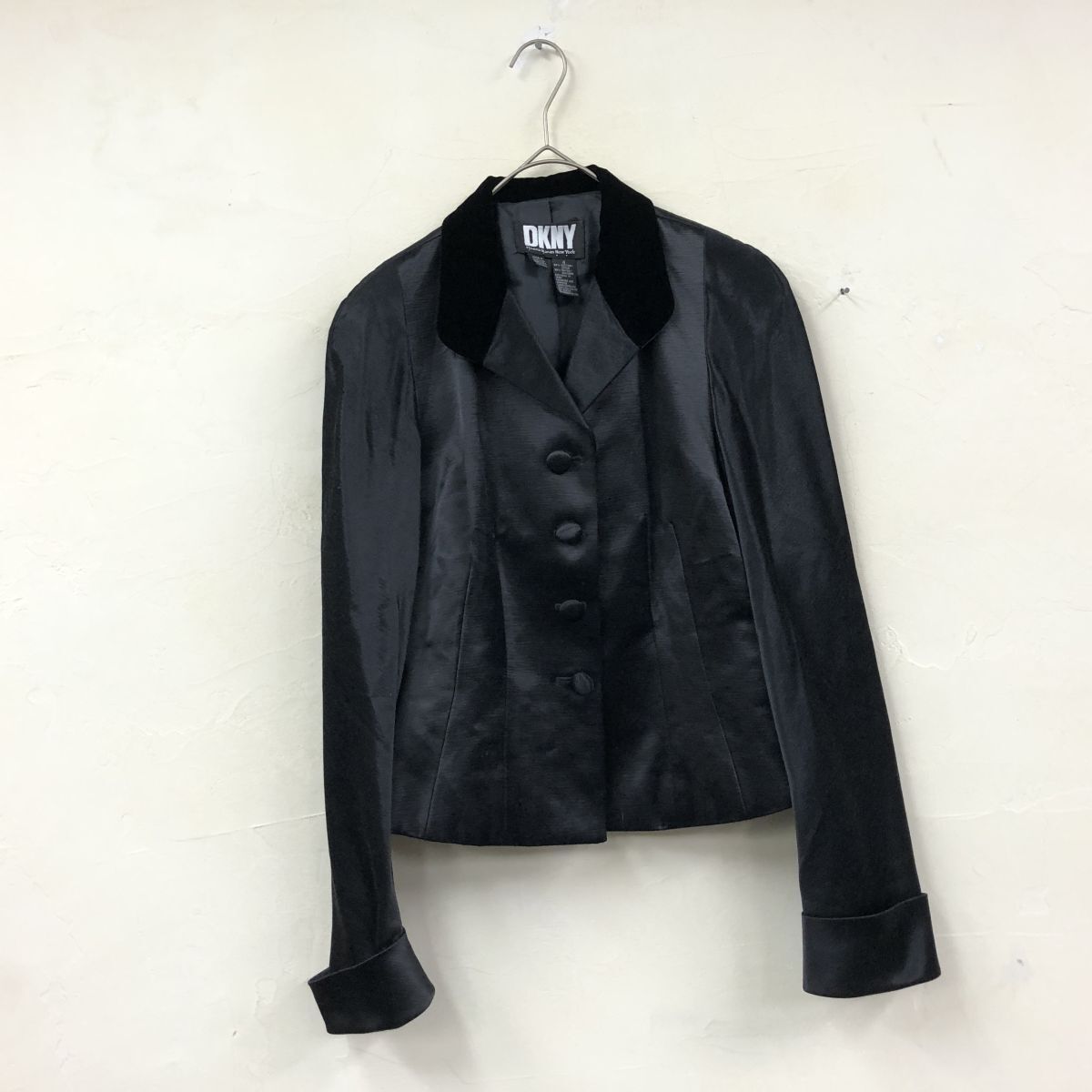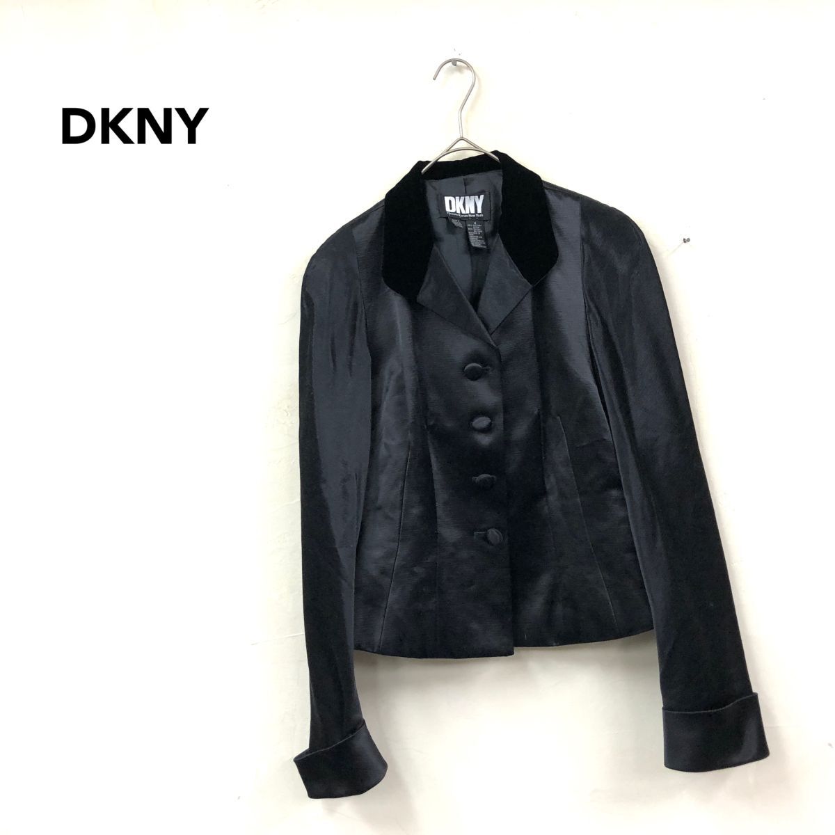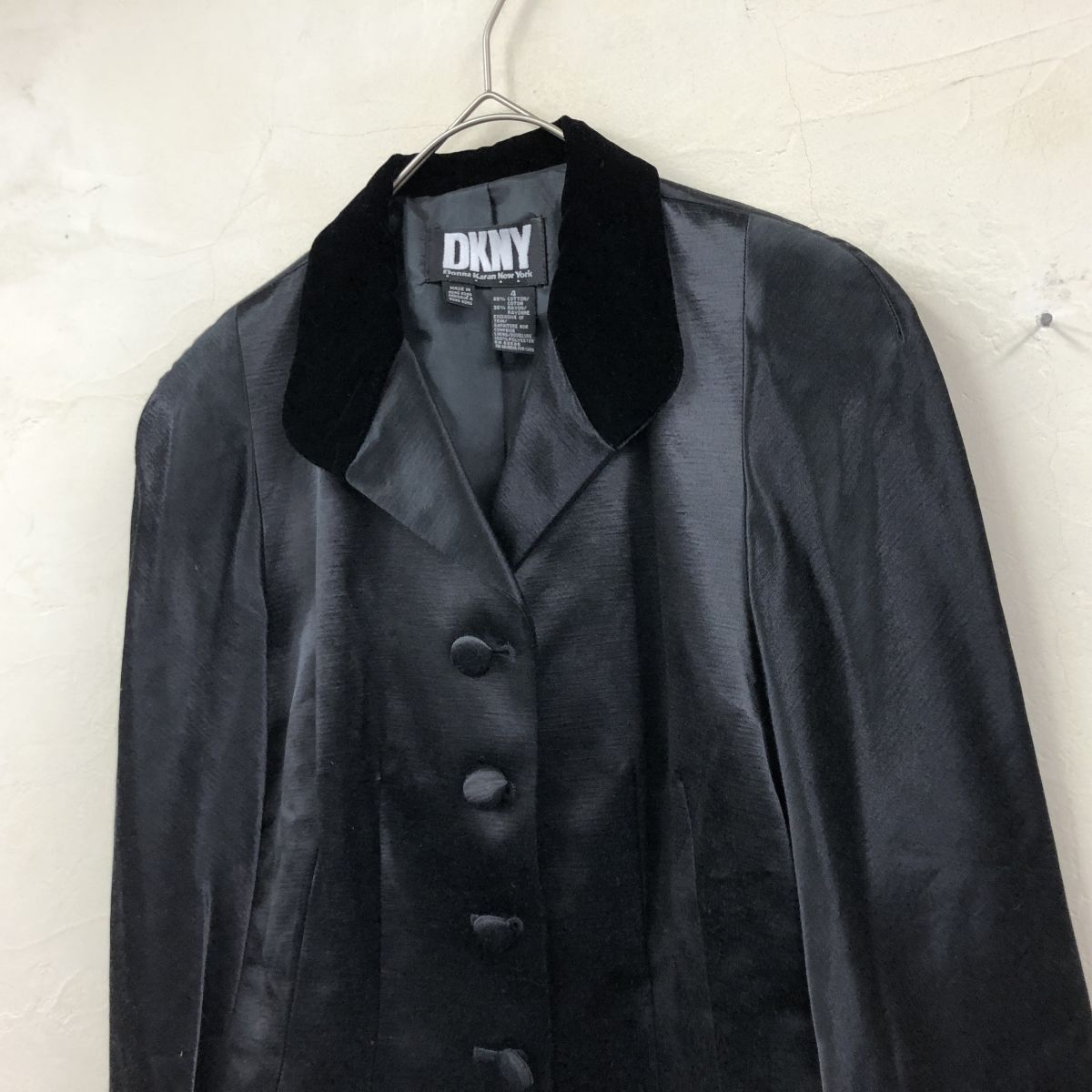 2O2883-D◆old◆ DKNY ダナキャラン ニューヨーク デザインジャケット シングル 襟ベロア ◆size4 ブラック コットン レーヨン