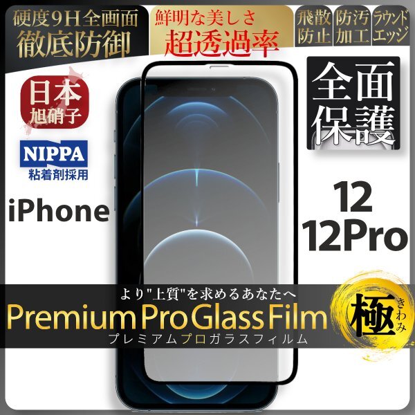 iPhone 12 / iPhone 12 Pro 全面保護 強化ガラスフィルム 旭硝子 自動吸着 99%透過 保護フィルム 液晶保護フィルム