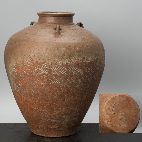 | 唐物三耳壺。箱無。 サイズは、幅約32cm、高さ約39.5cm。 くち、底の縁に欠けがあります。 耳のひとつは後補です。 胴(画像で丸印をした箇所)にヒビらしきスジあります。 状態、詳細は画像でご確認ください。 |