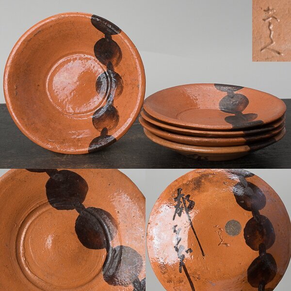 | 清水六兵衛の団子皿5枚。箱無。 サイズは、幅約12cm、高さ約2cm。 すべて小さなホツ・釉剥げあります。 状態、詳細は画像でご確認ください。 |