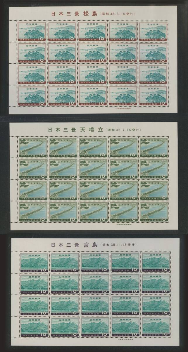 日本切手「日本三景」(松島・天橋立・宮島) シート 3種完 10円 額面600円 未使用
