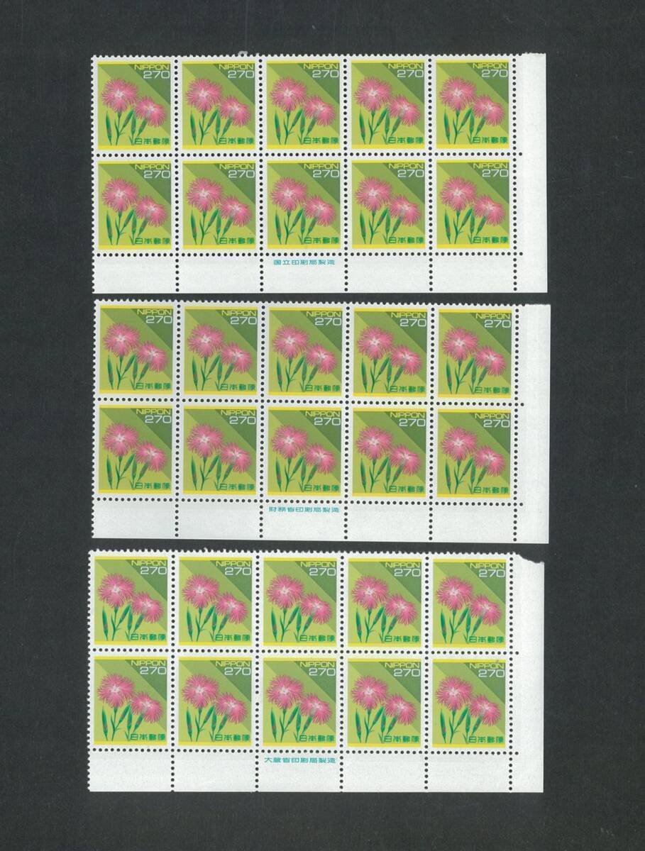 平成切手 270円 銘付10枚ブロック 3種 未使用 (下)裏右から2番目上に少糊落ち有