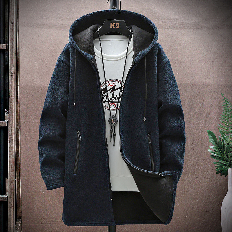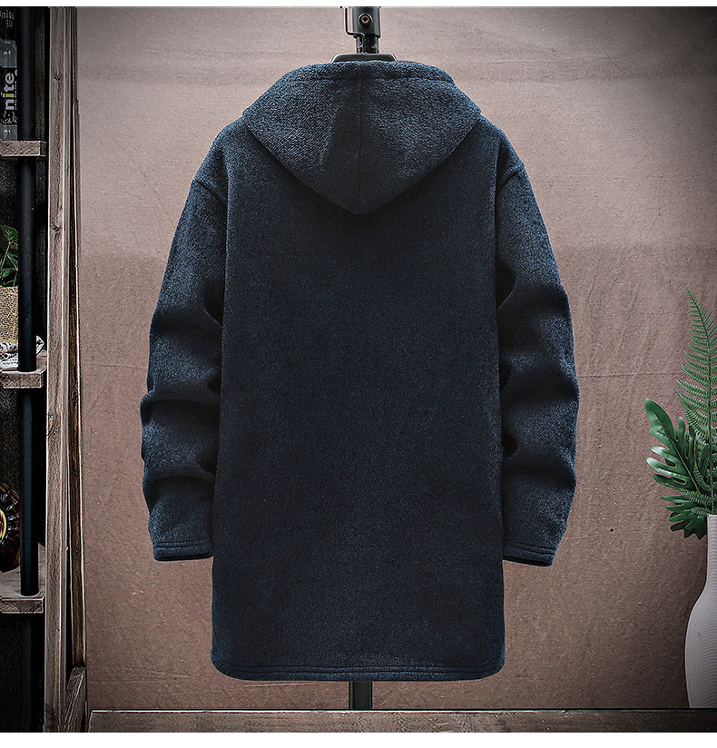 新品★カーディガン メンズ ジャケット ベンチコート ロングパーカー ジップアップ フード付き ニットセーター 裏起毛 防風 防寒 暖かい ネイビー3XL