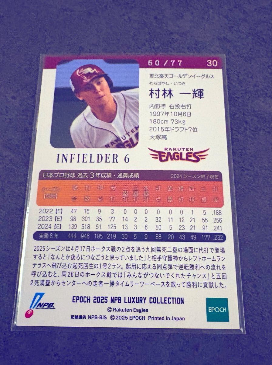村林一輝 EPOCH LUXURY COLLECTION 2025 77枚限定パラレル 楽天イーグルス