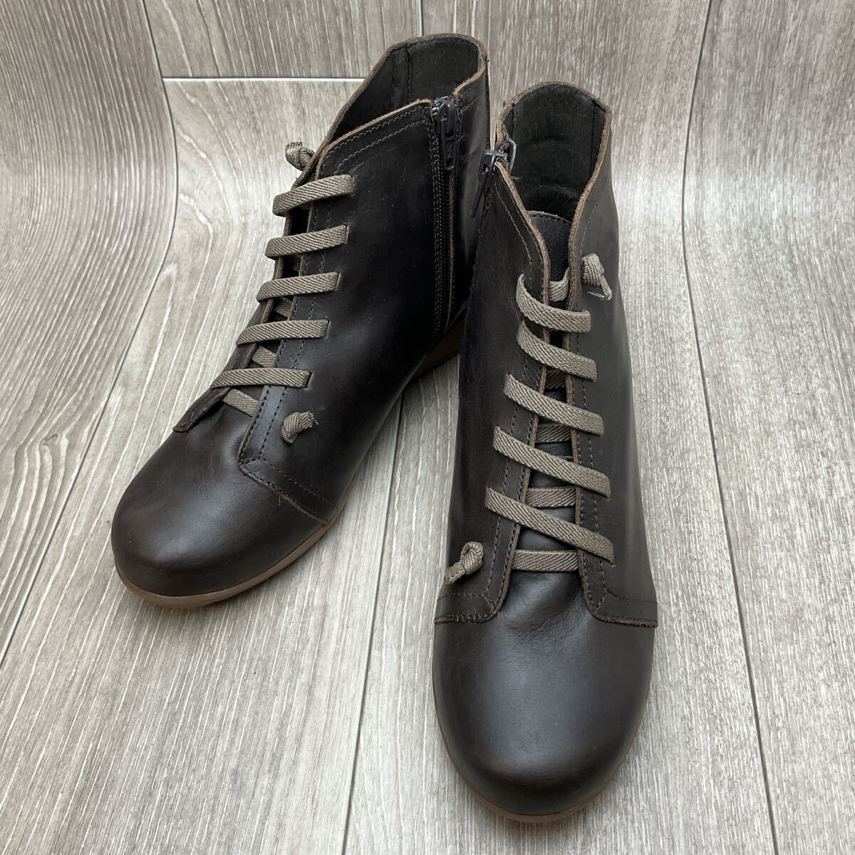ソフトなダークブラウンカラーのレザーはスペインならではの独特の質感がポイントです。