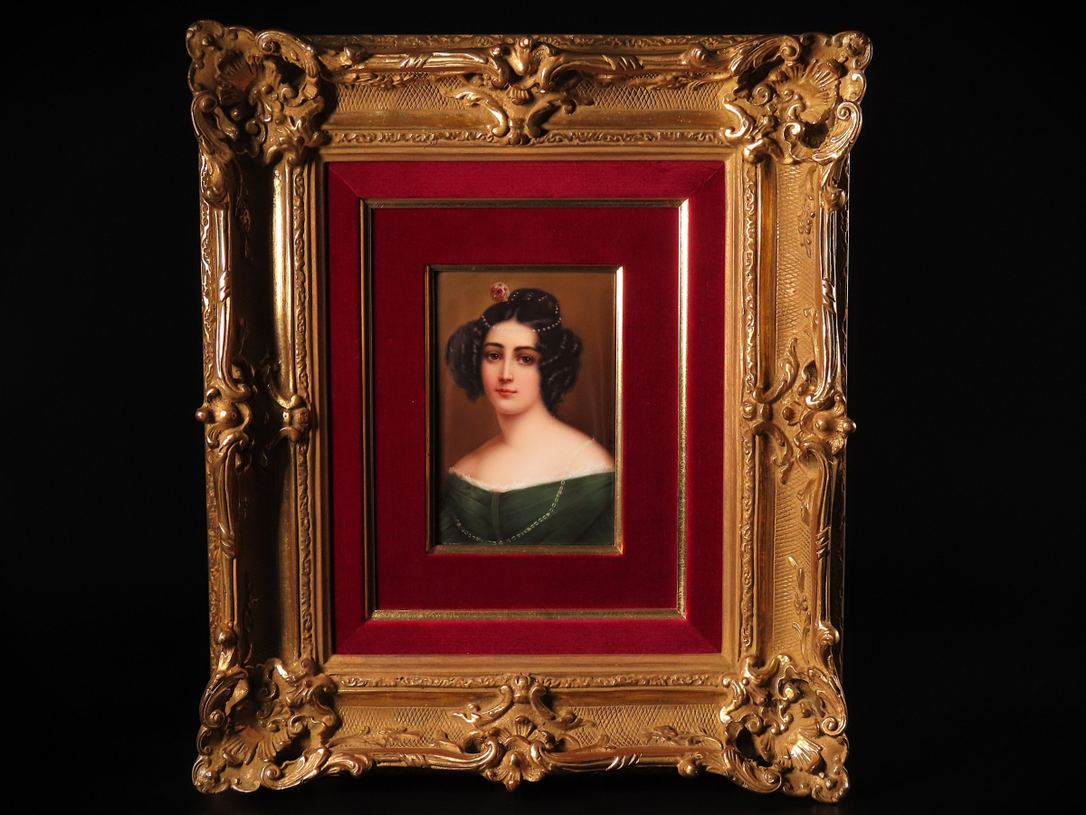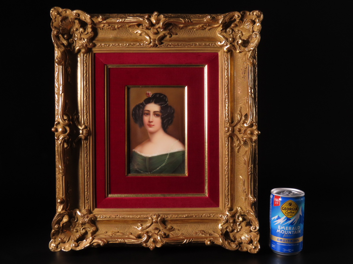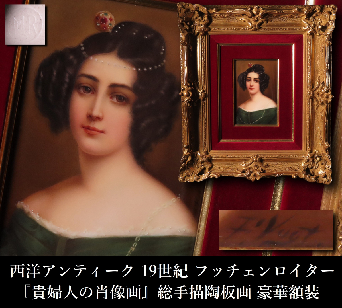 《ONE'S》西洋アンティーク 19世紀 HUTSCHENREUTHER フッチェンロイター 『貴婦人の肖像画』 総手描陶板画 豪華額装 保管箱付 百貨店購入品 | |||