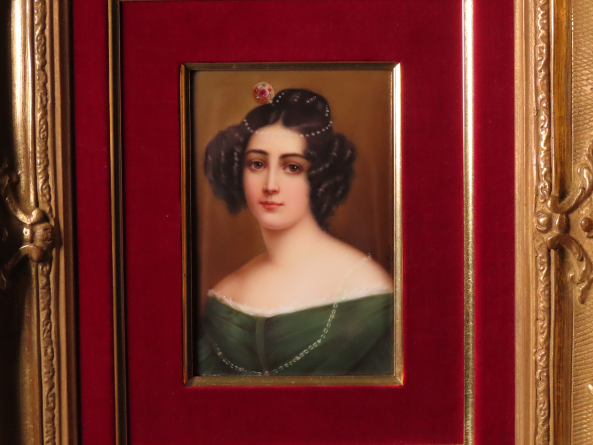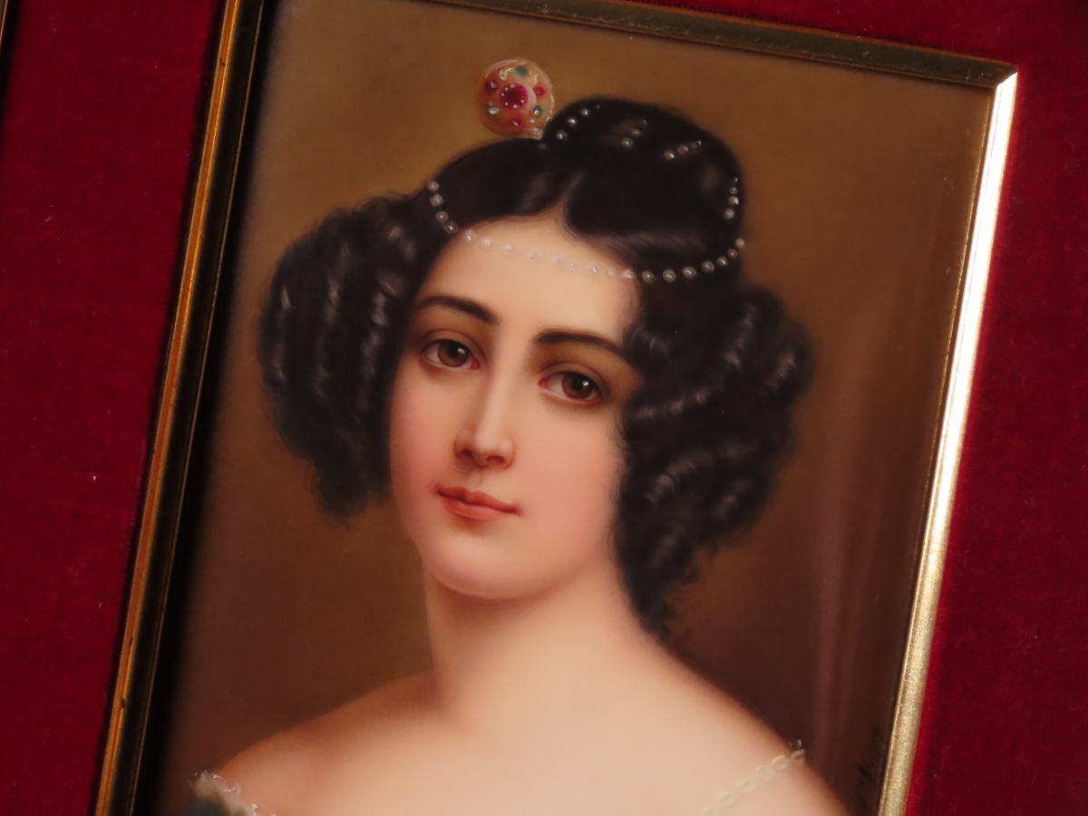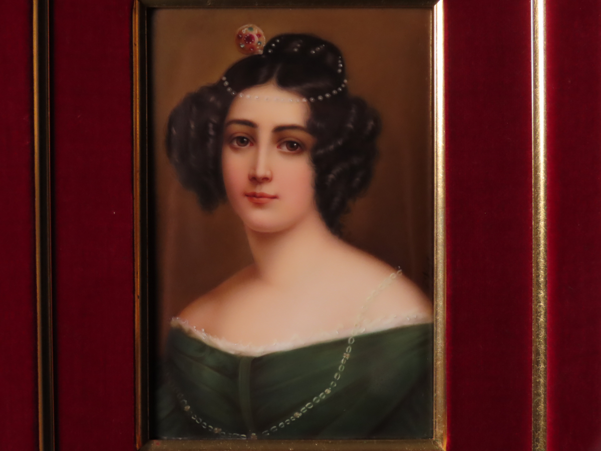 《ONE'S》西洋アンティーク 19世紀 HUTSCHENREUTHER フッチェンロイター 『貴婦人の肖像画』 総手描陶板画 豪華額装 保管箱付 百貨店購入品 | |||