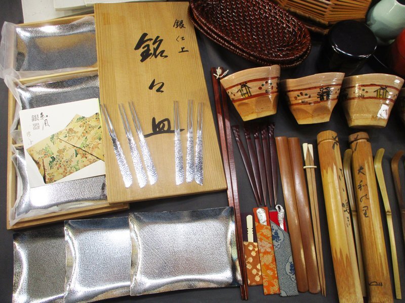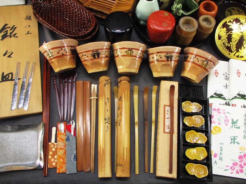10SR5517 ☆茨城県つくば市より出品!直接引取大歓迎です。 ★様々な茶道具をまとめたセットです。この機会にいかがでしょうか 個人所有・保管のお品物です。 擦れやヤケ、シミ等の経年の傷み、キズ、布地のホツレ、茶筅に破損があるものを含みます。 ※まとめ売りの為、一点一点の詳細に関しましてはお答えできかねます ※上記と画像の状態をご理解して頂いた上で入札をお願い致します。現状でのお渡しです ※感じ方に個人差がございますので、些細な所まで気になさる方や、完全美品をお探しの方は入札を御遠慮下さい |