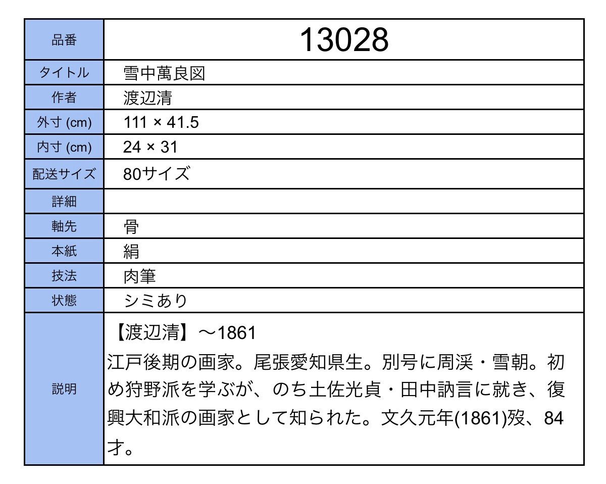 【模写】吉】13028 渡辺清 雪中萬良図 土佐光貞・田中訥言師事 復興大和派 尾張愛知県の人 茶掛け 茶道具 掛軸 掛け軸 骨董品