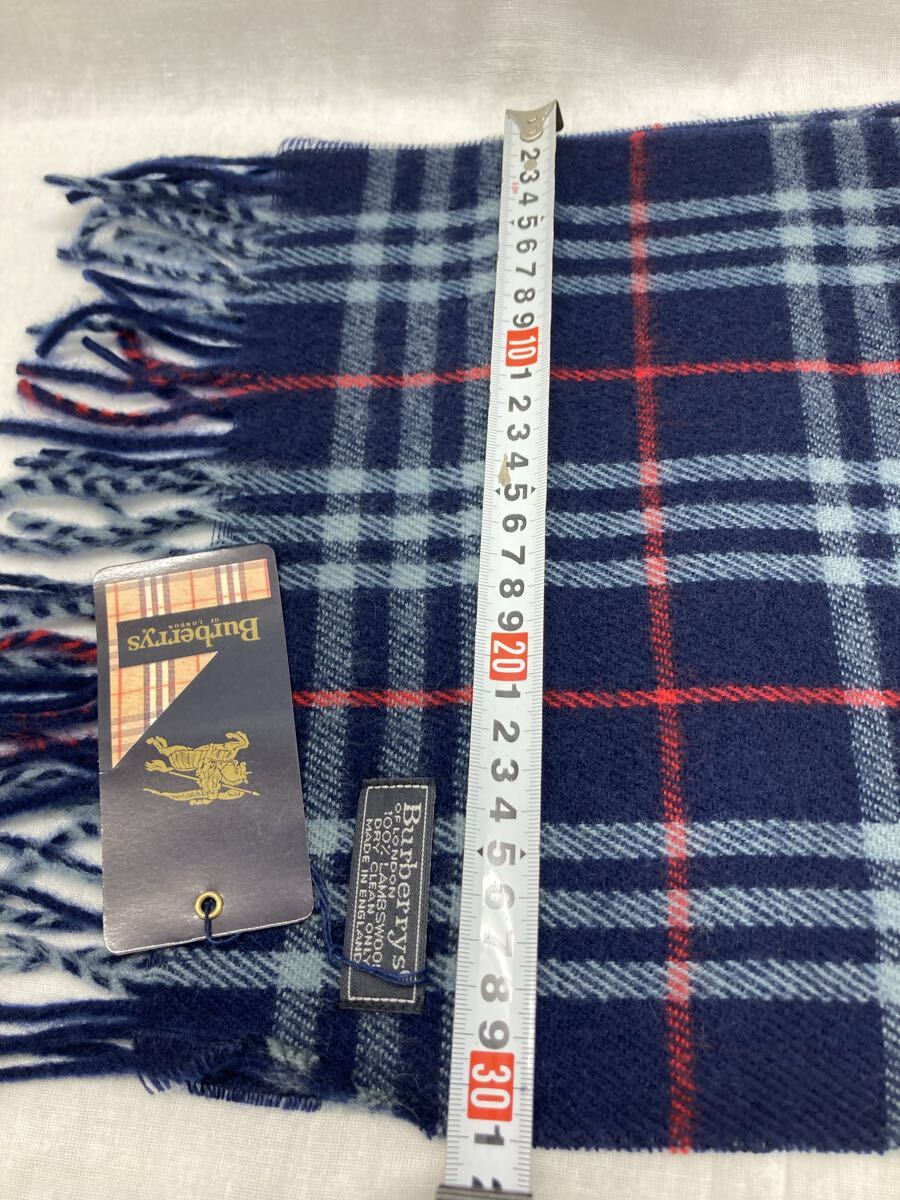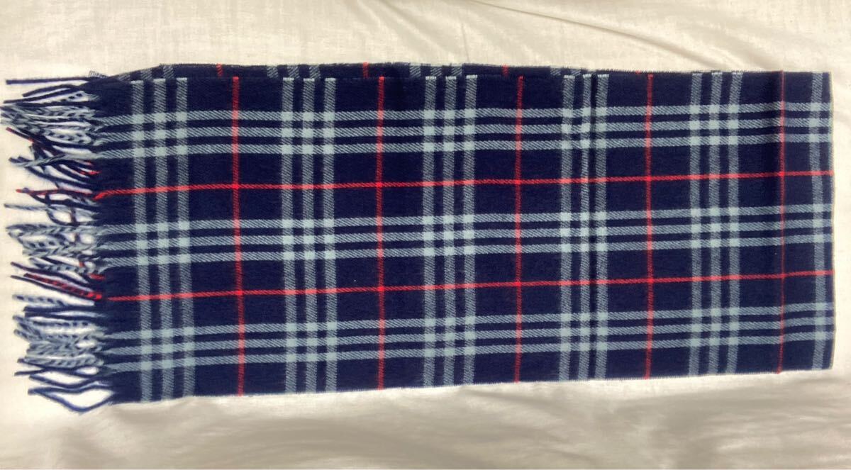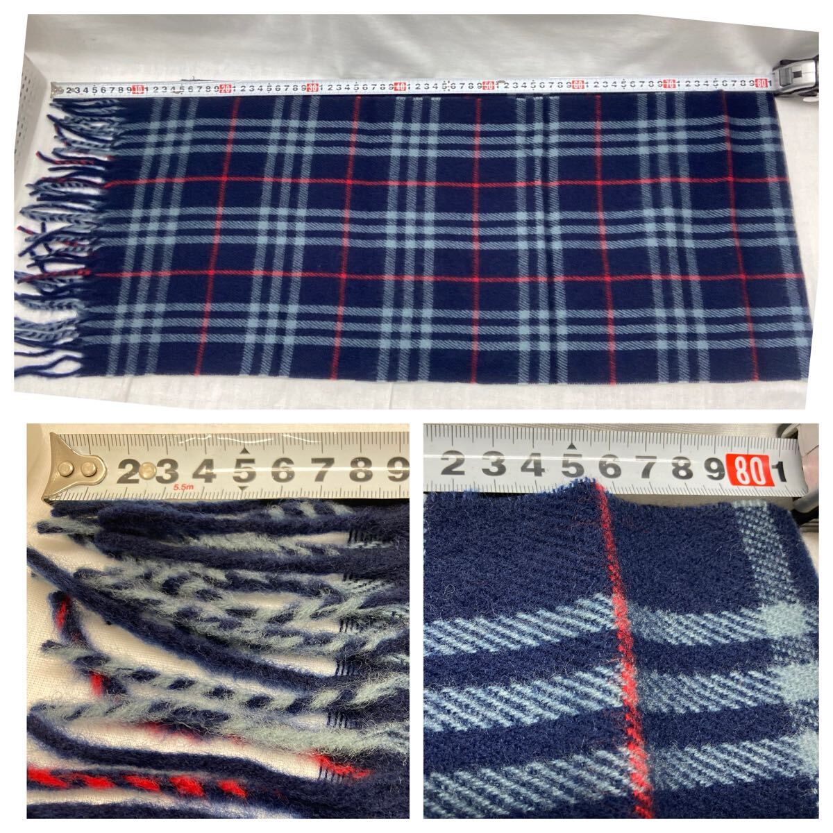 【美品】Burberrys バーバリーズ マフラー ノバチェック ネイビー ラムウール100% フリンジ 英国製 メンズ レディース ブランド小物