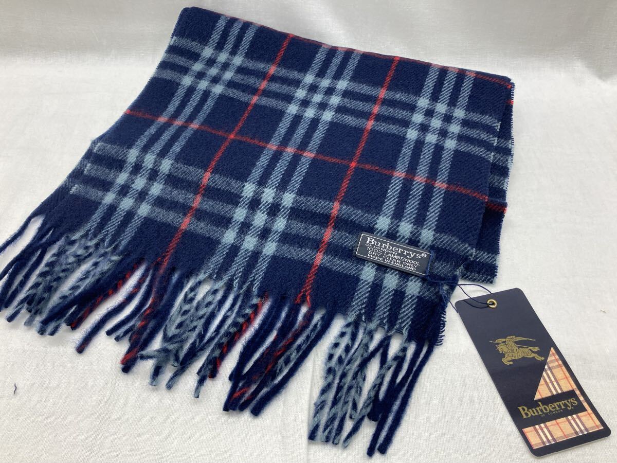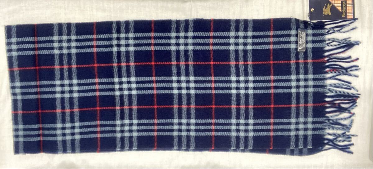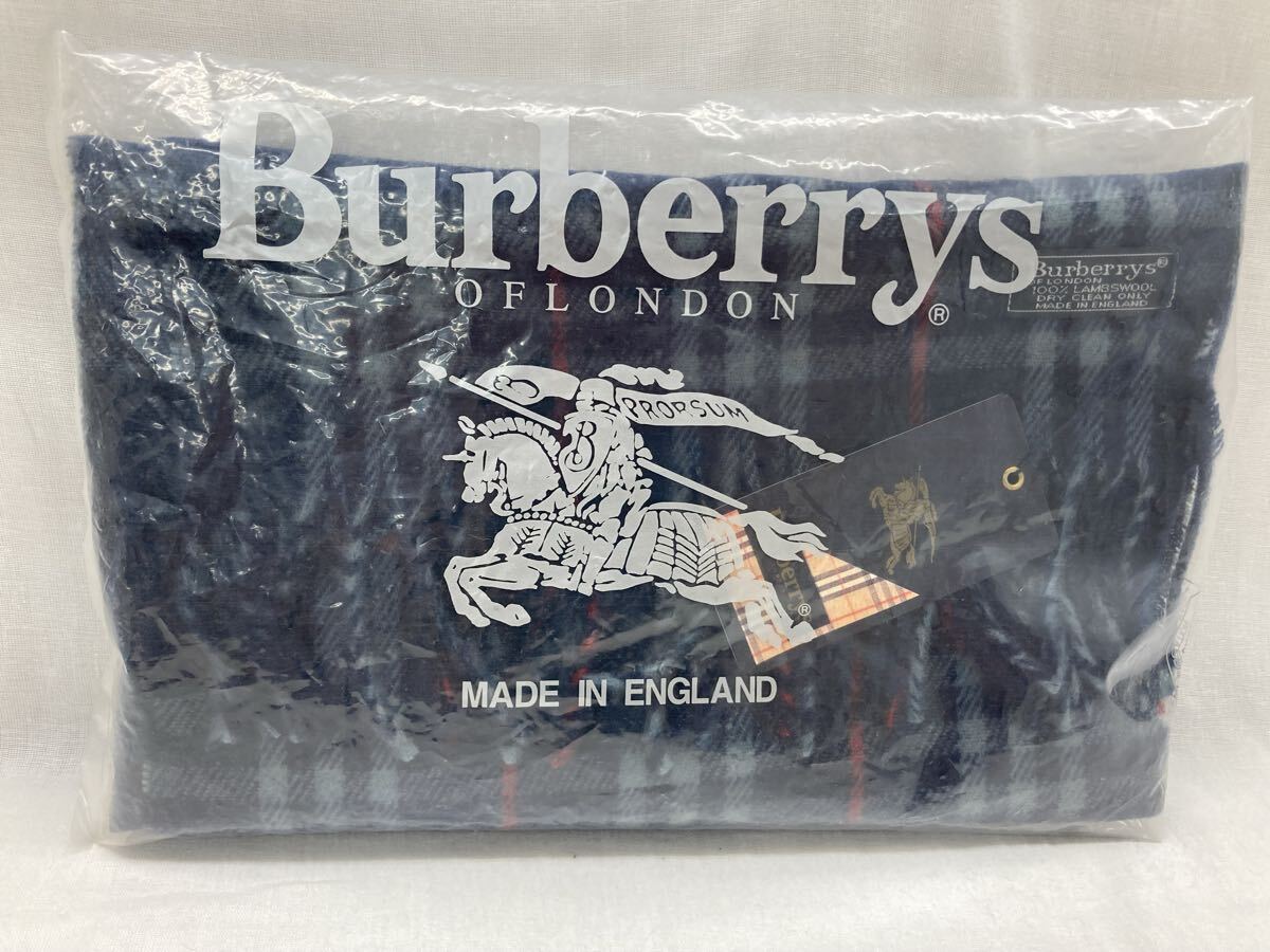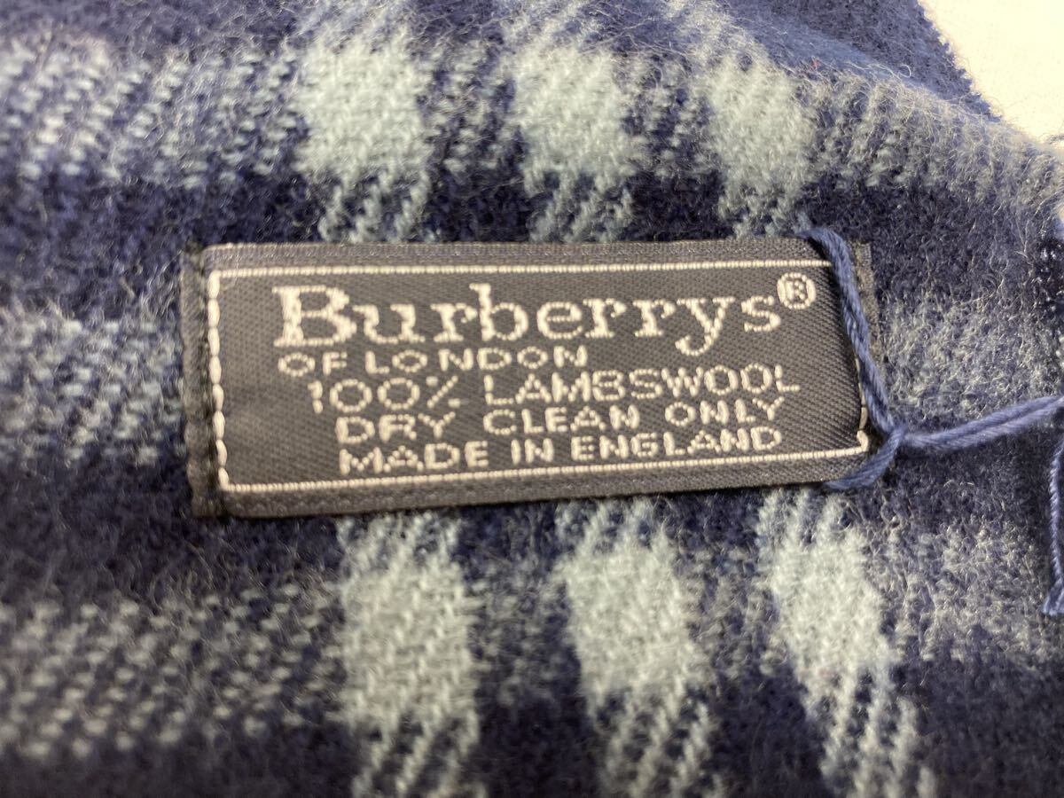 【美品】Burberrys バーバリーズ マフラー ノバチェック ネイビー ラムウール100% フリンジ 英国製 メンズ レディース ブランド小物