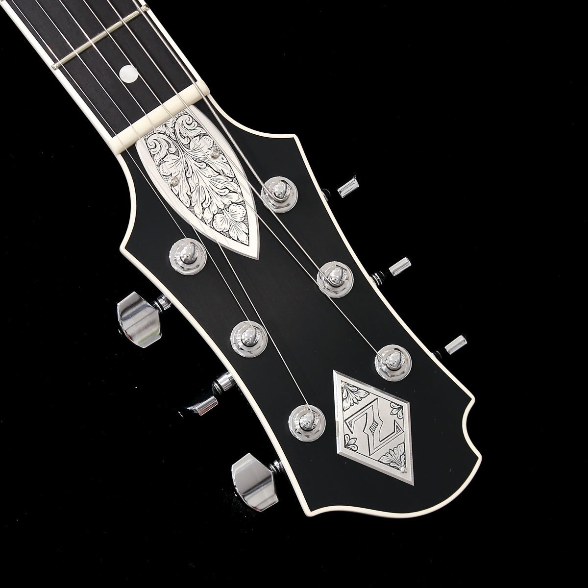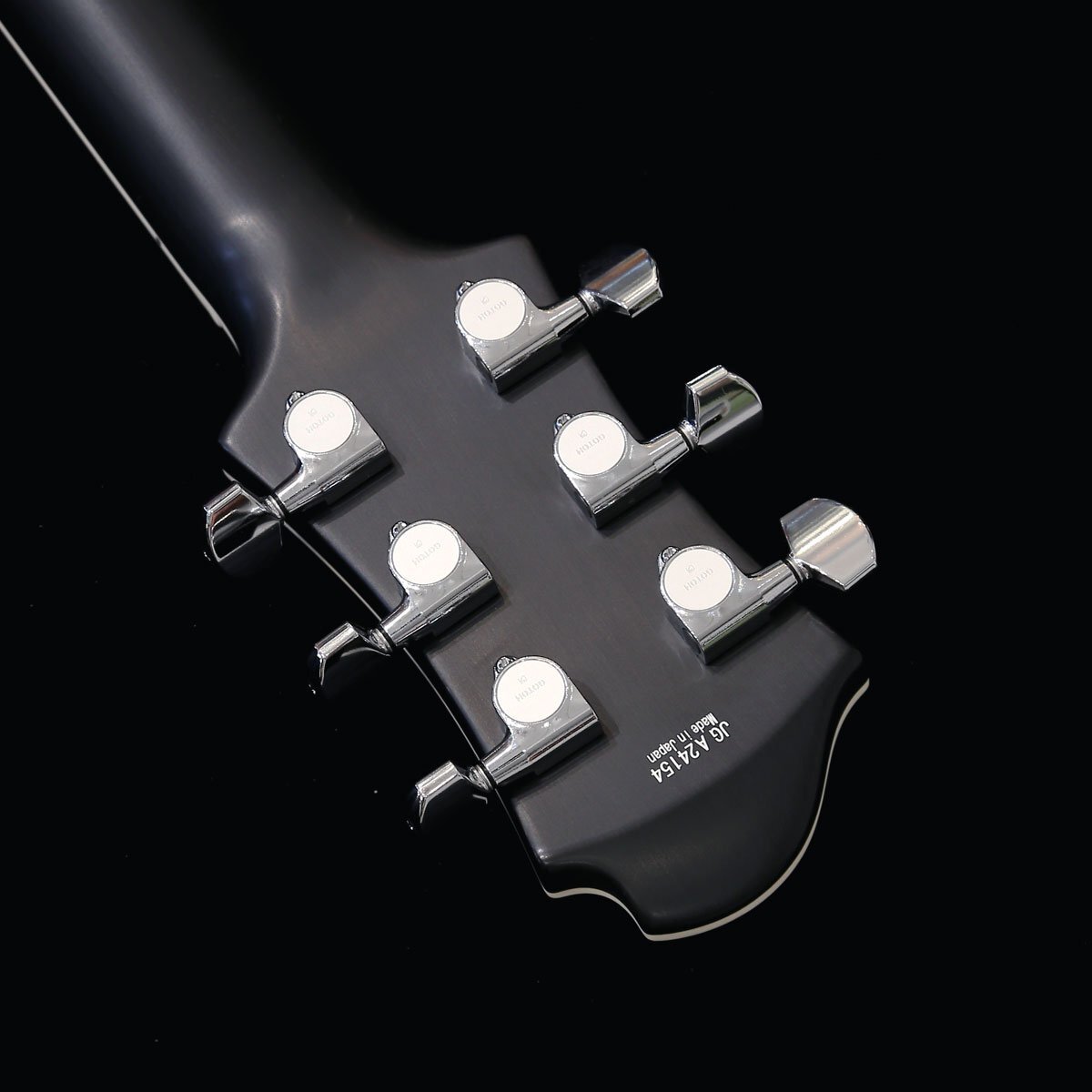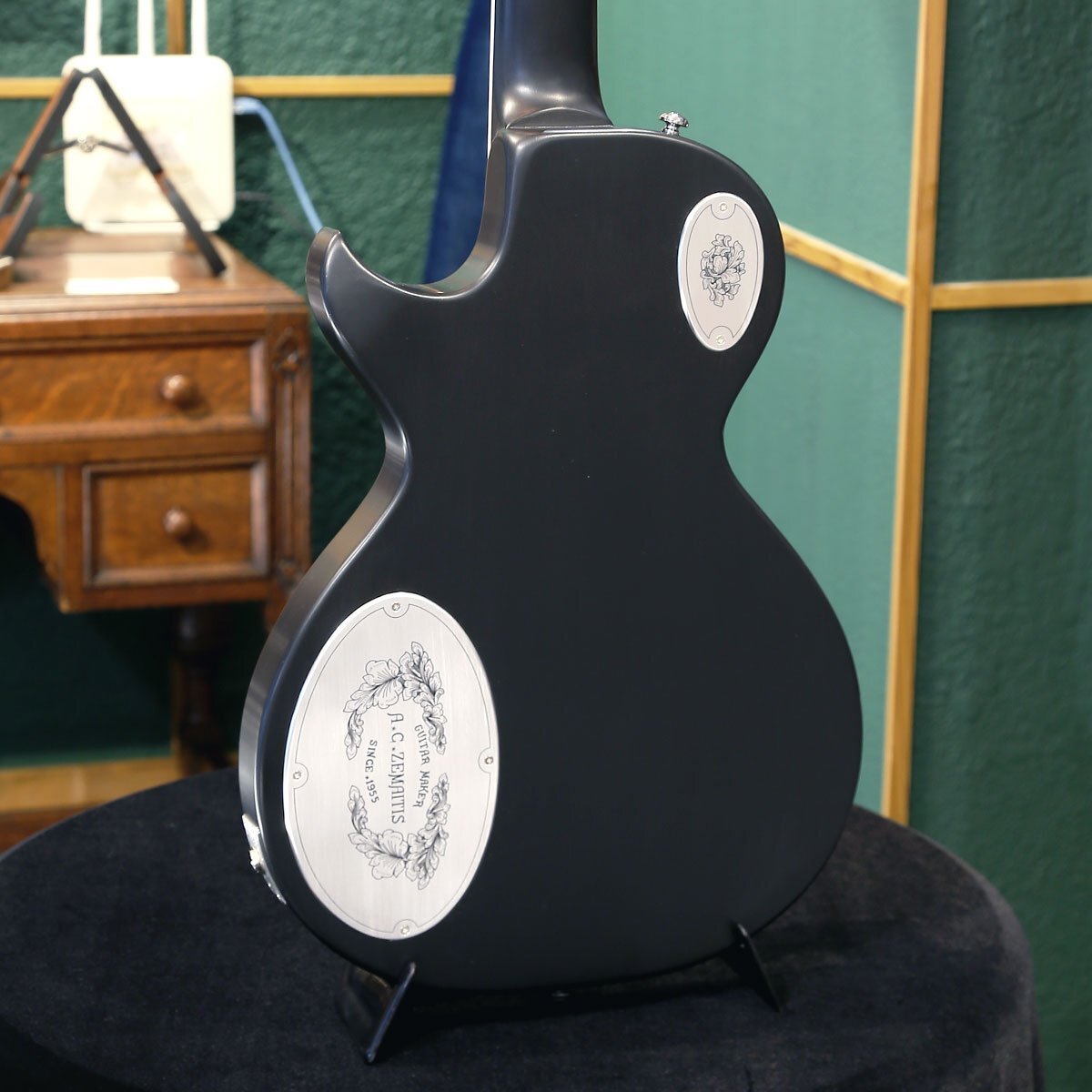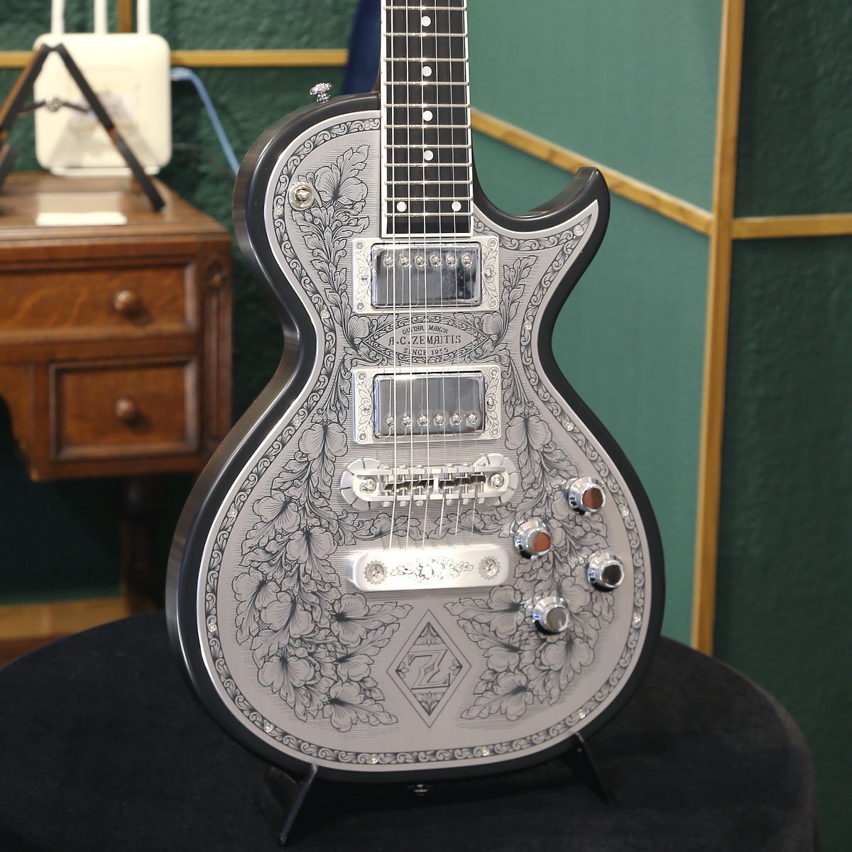ゼマイティスより、トップに彫金装飾を用いたメタル・フロント・モデル「MFG-AC-24 Diamond & Z」が登場しました。 MFG-AC-24はウェストのくびれが大きいシングル・カッタウェイのボディー・スタイルで、ボディーとネックに厳選されたアフリカン・マホガニー、フィンガーボードはエボニーを使用しています。 635mmのスケールで、セット・ネック・ジョイント、ミディアム・サイズの24フレット仕様で、ブリッジ後方に「Diamond & Z」のデザインを採り入れたモデルです。 「ヘッドに取り付けているダイアモンド・エンブレムを、メタル・ピックガードのデザインに採り入れてみてはどうか?」という発想が元になり、生まれたデザインです。 ゼマイティス・オリジナルのアルミ合金を使用したブリッジ&テイルピースを搭載し、ゼマイティス独自のトーンを生み出す要素となっています。 同様にアルミ合金を用いたヘッドのダイアモンド・エンブレム、トラスロッド・カバー、テイルピースやピックアップ・リングをはじめ、アウトプット・ジャック・プレート、コントロール&スイッチ・バック・プレートに至るまで装飾を施しています。 ピックアップは、メタル・カバード・タイプのDragon Classicハムバッカーを2基搭載、コントロールは定評のあるCTSポットを使用し、各ピックアップ・ヴォリュームと各ピックアップ・トーンのレイアウトです。 スイッチクラフト製の3ウェイ・ピックアップ・セレクター・スイッチを備え、トーンのキャパシターはオレンジ・ドロップを使用しています。 さらに信頼性の高いゴトー製のチューナーを使用しています。 フィニッシュはラッカーを使用し、カラーはナチュラルとブラックの2カラーをラインナップしています。 英国発祥のゼマイティスらしさや伝統的なメタル・フロントならではのデザインを前面に出しつつ、最前線でプレイするギタリストやギター・テクニシャンたちへの徹底的なヒヤリングを重ね、現代のプレイヤーが求める要素を注入したモデルに仕上がっています。 ●2つのピックアップの間には、「A.C.ZEMAITIS SINCE1955」の文字が彫金されている。 ●ピックアップ・リングは、最新の弦の角度にあわせたアングル付きではなく、あえて従来のフラット・タイプを合わせることでクラシックな印象を持たせた。 ●「ヘッドに取り付けているダイアモンドZバッジを、メタル・ピックガードのデザインに採り入れてみてはどうか?」という発想が元になり、生まれたデザイン。 ●Back View: アルミ合金に装飾を入れた高級感のあるバック・プレートを装着。 SPEC ■Body Top: Duralumin ■Body Back: Select African Mahogany ■Neck: Select African Mahogany ■Neck Joint: Set neck ■Nut Width: 43mm (1-11/16") ■Nut: Bone ■Fingerboard: Bound Ebony ■Scale: 635mm (25") ■Frets: 24 Medium ■Neck Pickup: Dragon Classic Neck ■Bridge Pickup: Dragon Classic Bridge ■Radius: 305mm (12") ■Controls: 2 volume, 2 tone, 3-way toggle ■Tuners: Gotoh SG301-01-Chrome ■Finish: Lacquer ■Protection: Hard Shell Case ■Strings: Nickel Plated Steel (.010, .013, .017, .026, .036, .046) ■Colors: Black ■Weight: 約4.0kg |