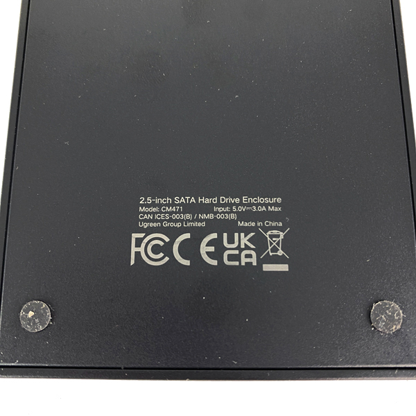 モデル名:CM471 対応規格:SATA III(6Gbps)互換 転送速度:最大5Gbps(USB3.0接続時) 入力:5V 3.0A Max サイズ:約 125mm × 80mm × 15mm 重量:約 130g 生産国:中国(Ugreen Group Limited) 認証:FCC / CE / UKCA / RoHS 準拠 |