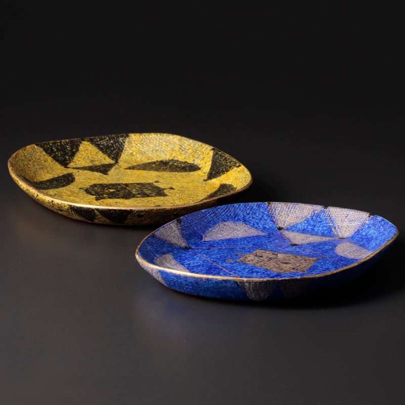 前田氏のトレードマークでもあるふくろうが描かれた、カラフルな色彩が楽しいお皿です。手作りなので個体差はありますが、ほぼ同形、同サイズの六色セットです。 ★商品は前田正博の作品である事を保証致します。 |